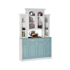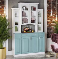 Буфет 4-х створчатый Констанция (Белый матовый/Голубой, Белый)
