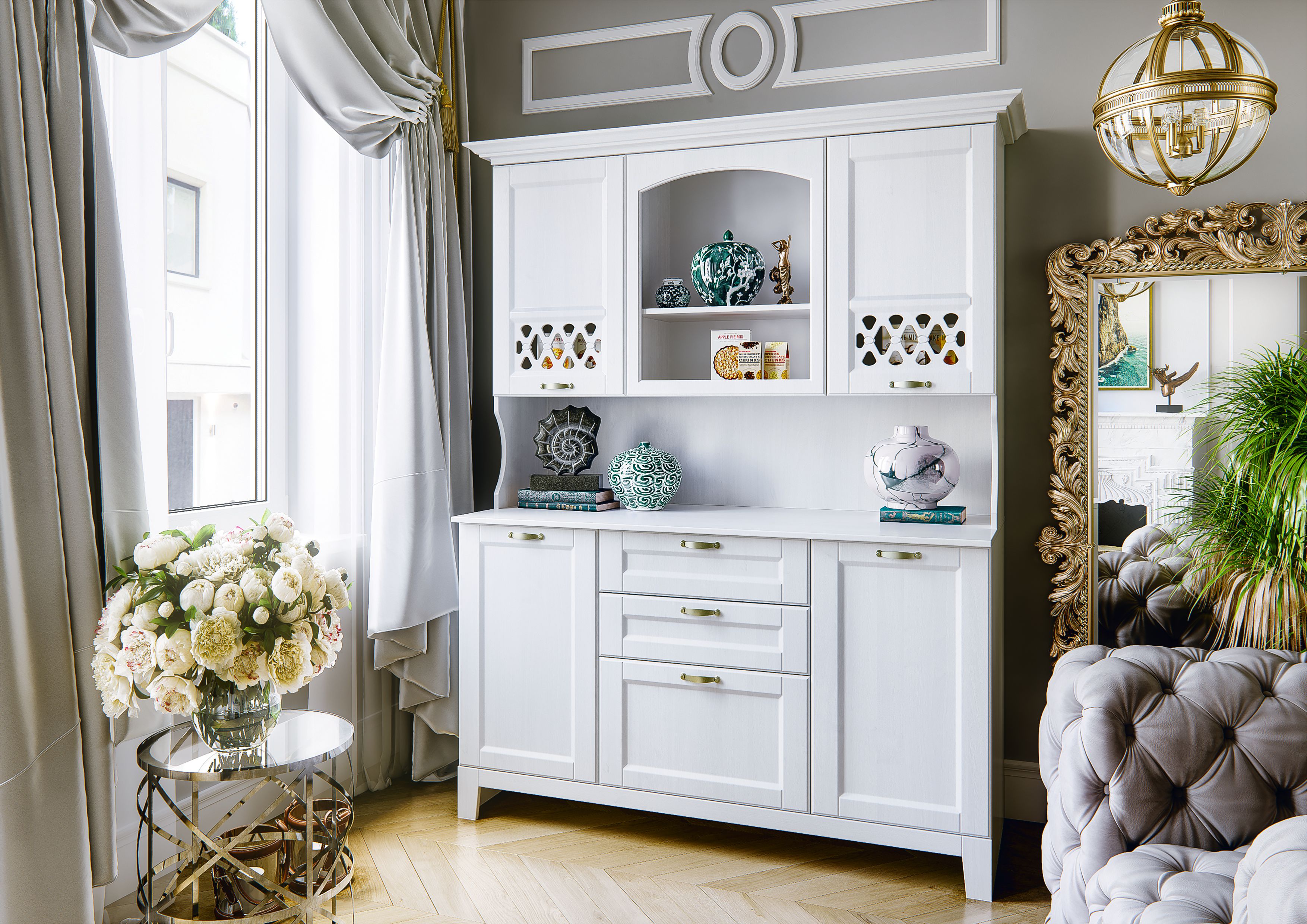 Буфет Милано (Белый текстурный, Белый)