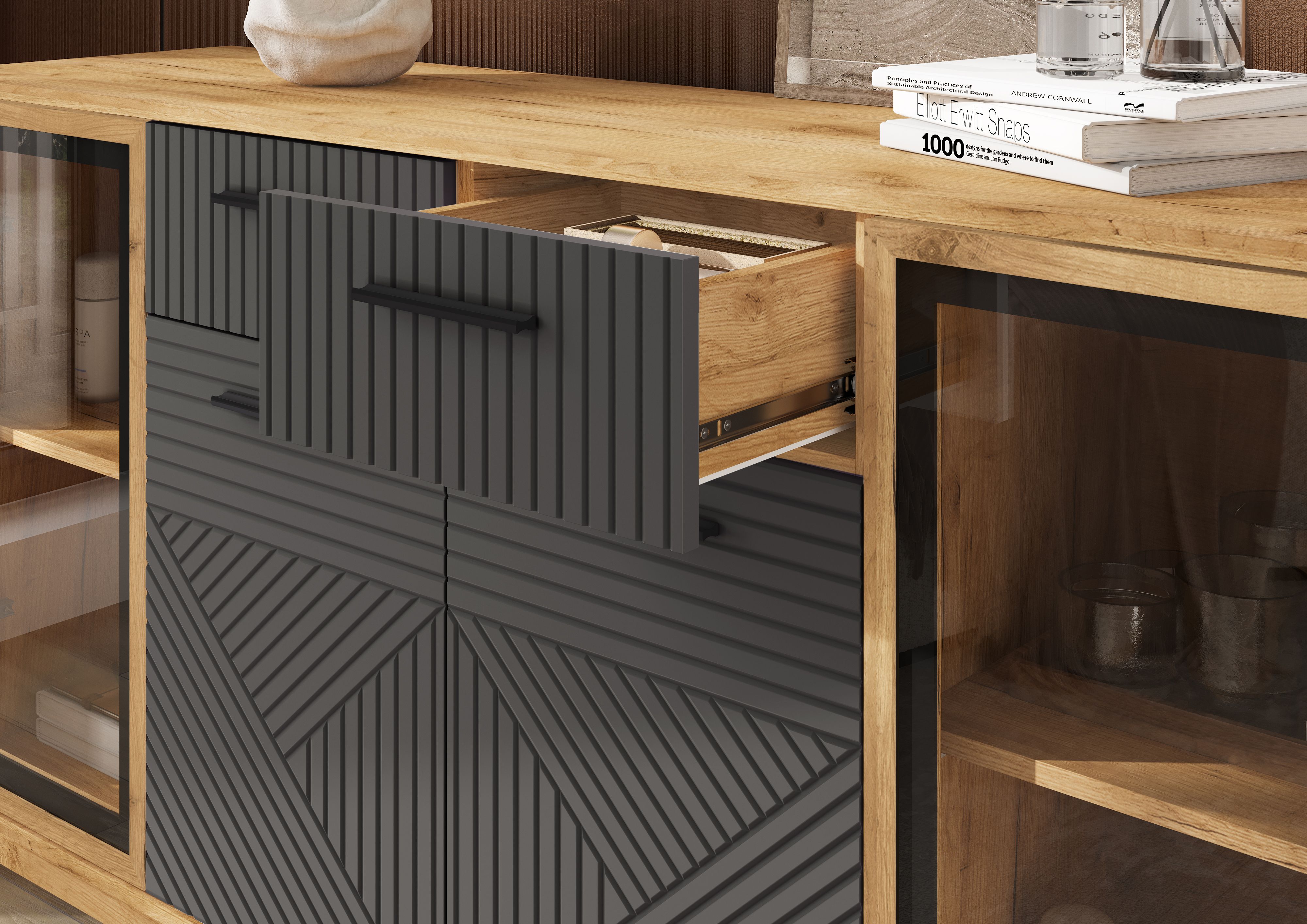 Флэш Комод (рамка AGT) (Браш Графит, Дуб Крафт)