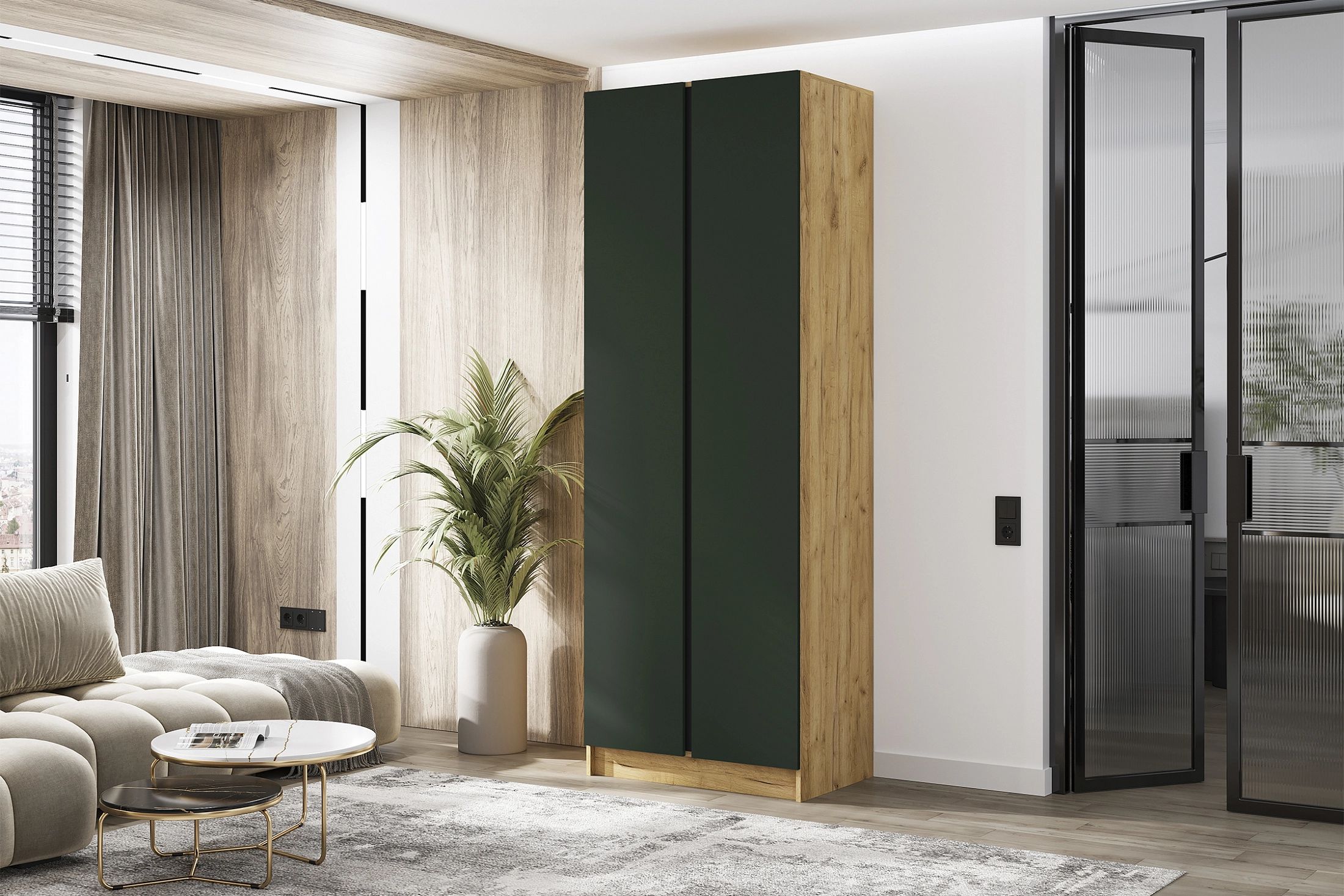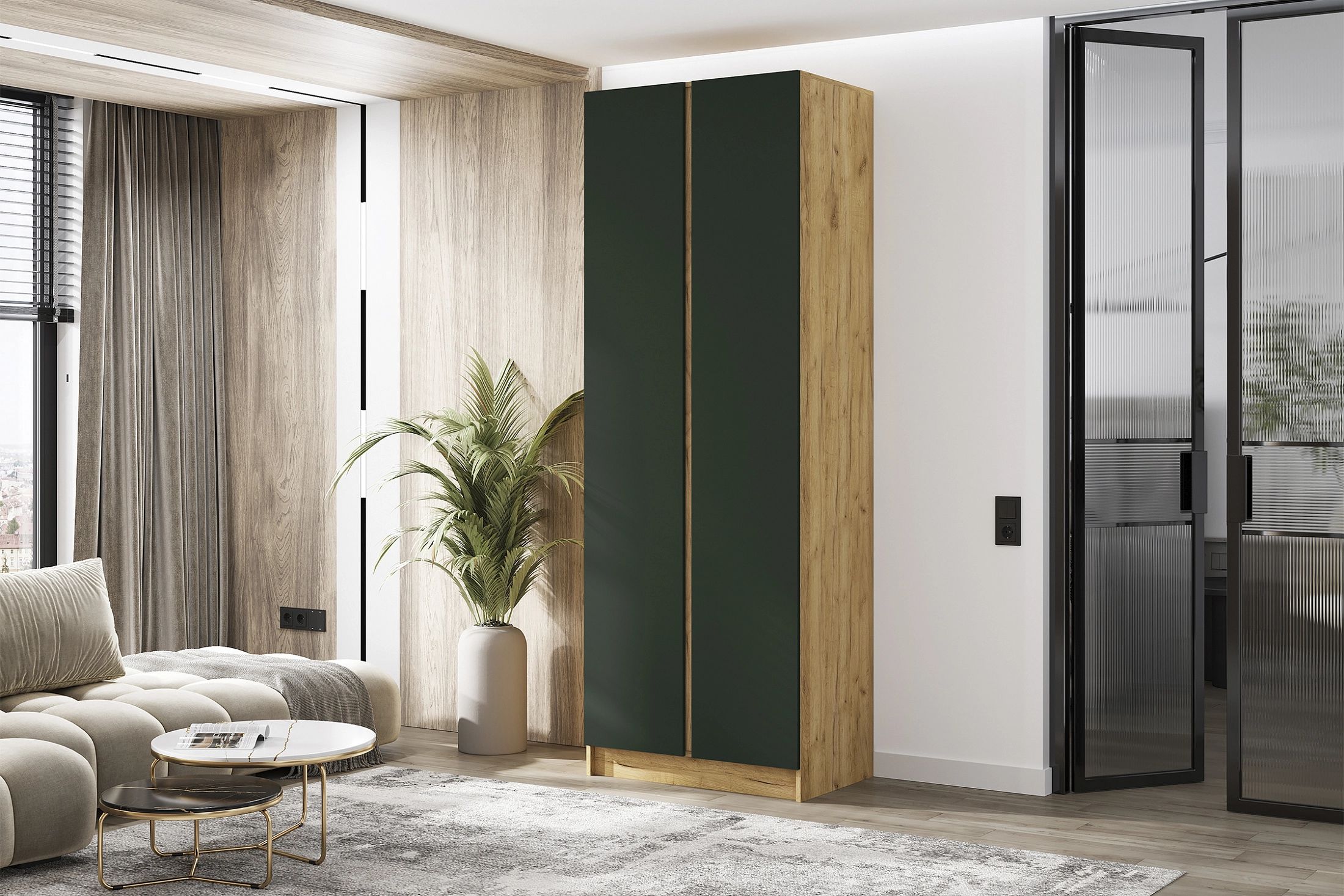 Келвин Шкаф 2-х ств. (800) (Изумрудный, Дуб Крафт)