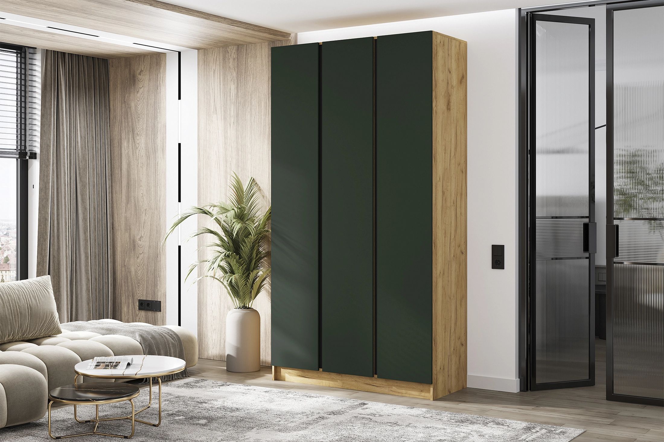 Келвин Шкаф 3-х ств. (1200) (Изумрудный, Дуб Крафт)