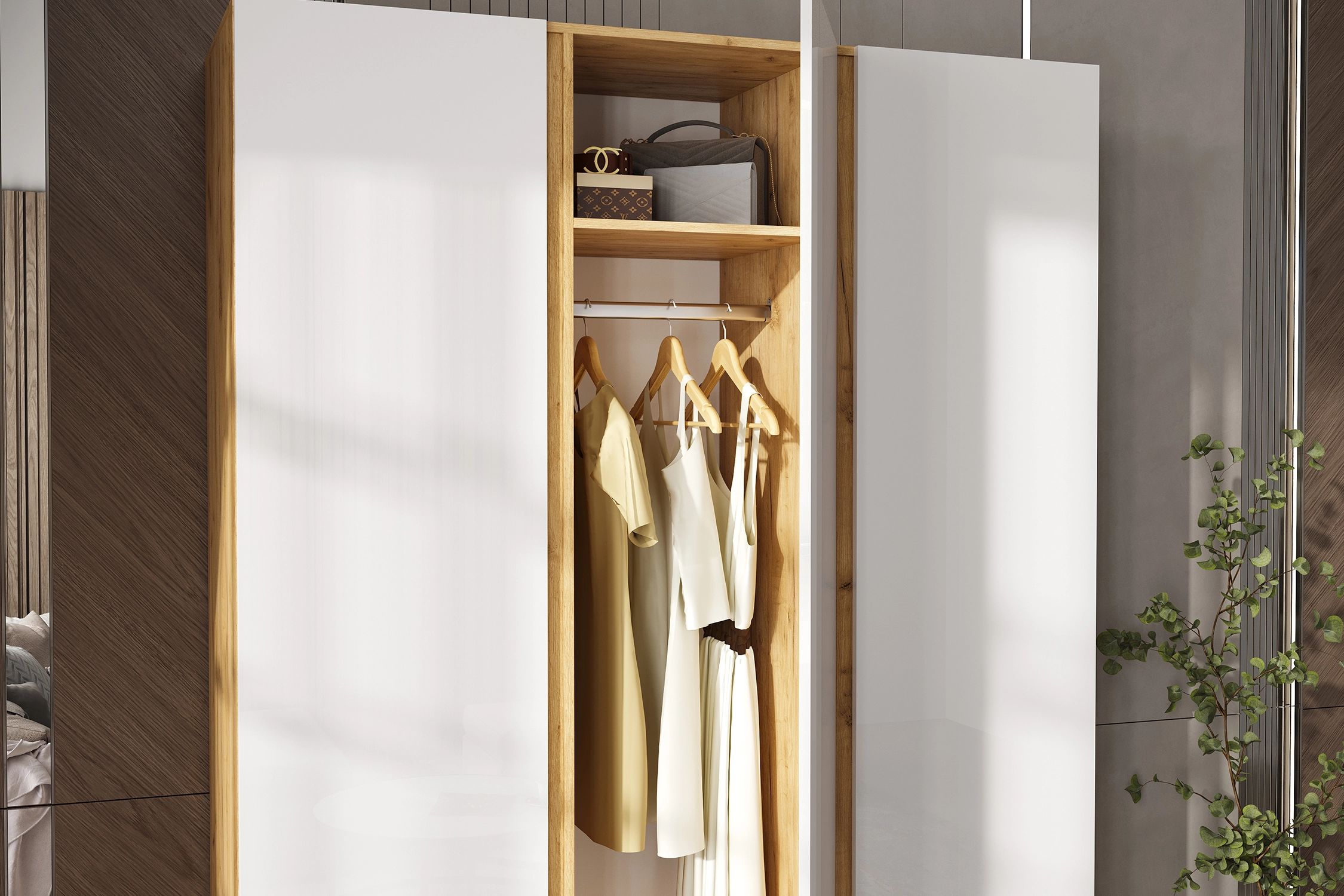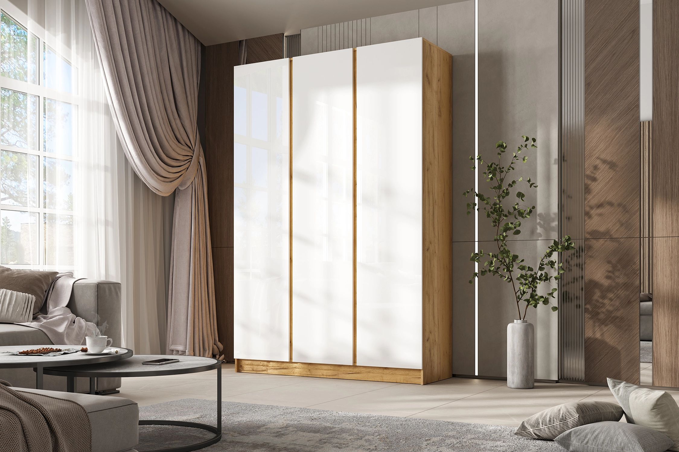 Келвин Шкаф 3-х ств. (1500) (Белый Глянец, Дуб Крафт)