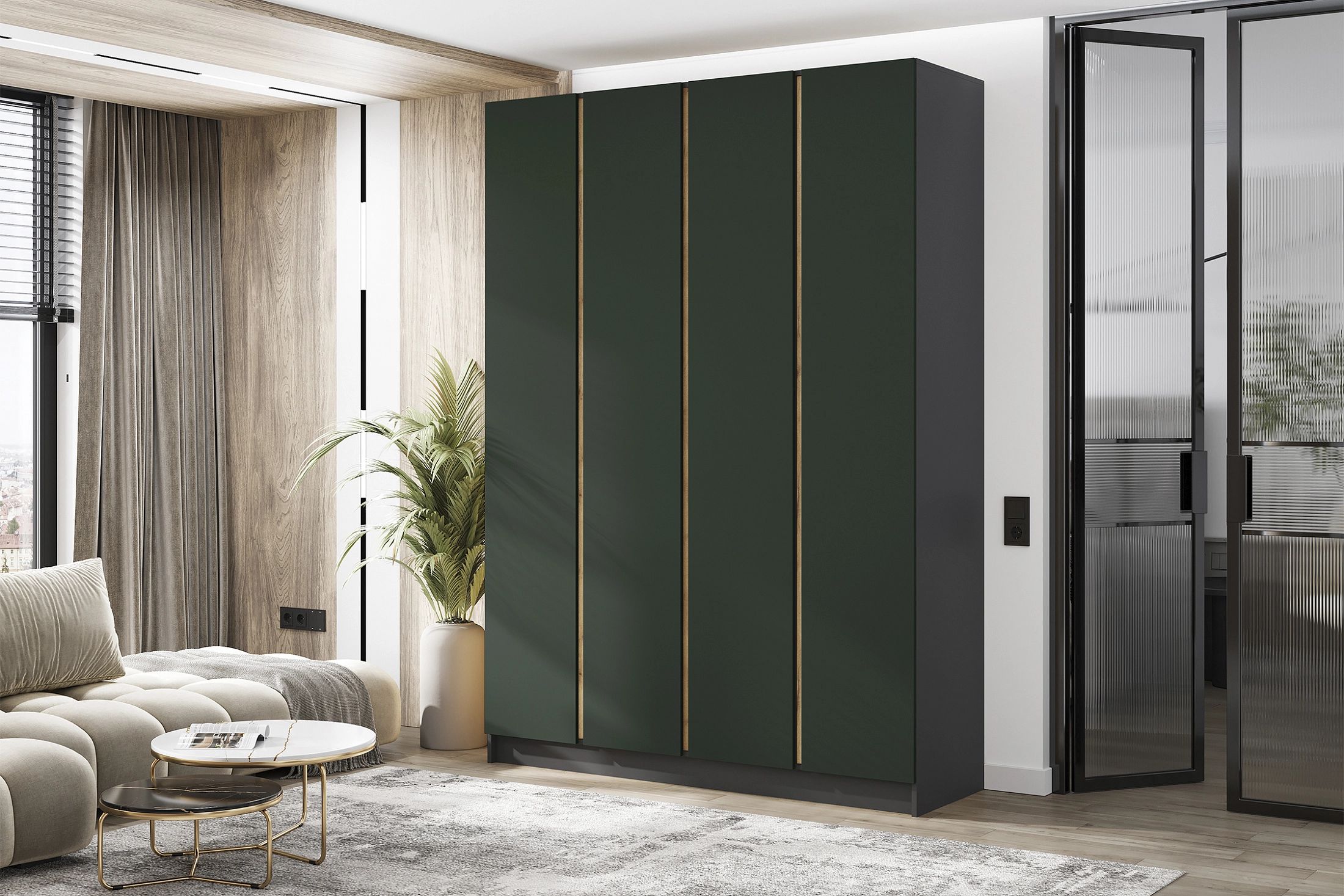 Келвин Шкаф 4-х ств. (1600) (Изумрудный, Графит)