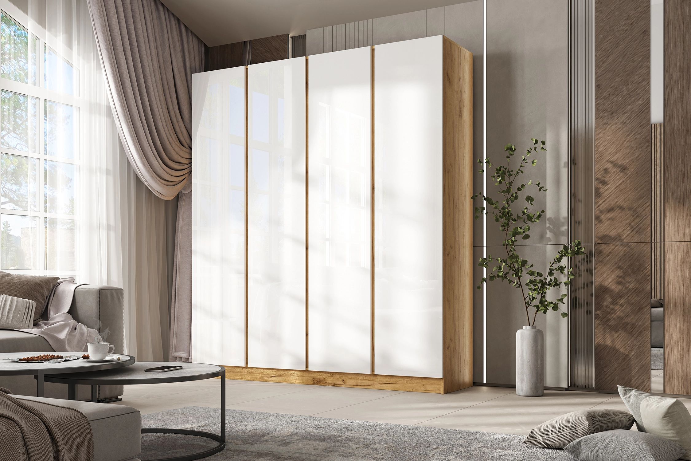 Келвин Шкаф 4-х ств. (2000) (Белый Глянец, Дуб Крафт)