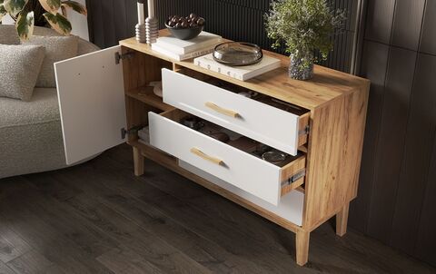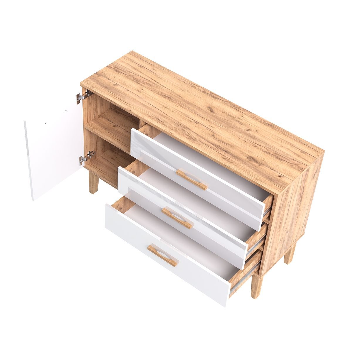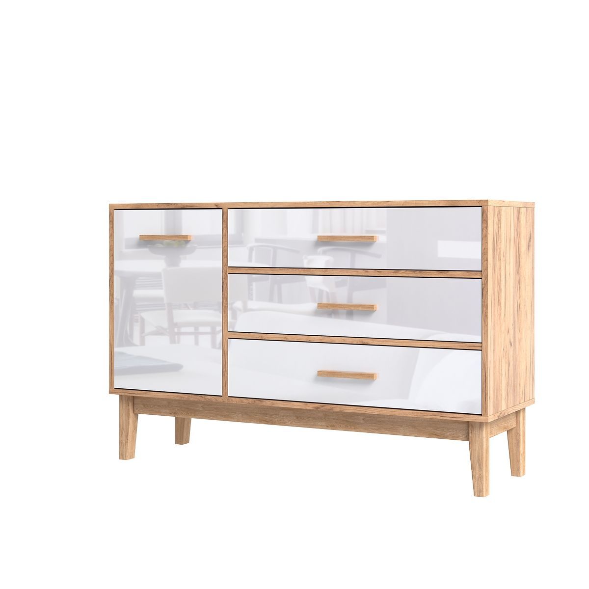 Комод Кельн 1 дверь 3 ящика (1200) (Белый Глянец, Дуб Крафт)