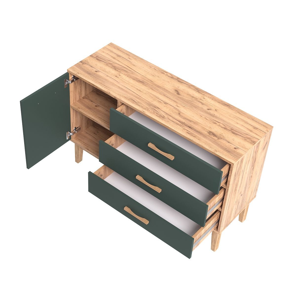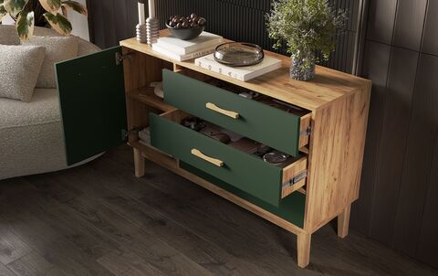 Комод Кельн 1 дверь 3 ящика (1200) (Изумрудный, Дуб Крафт )