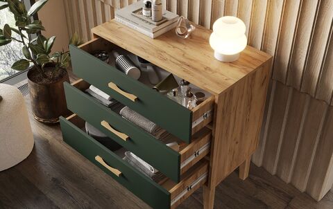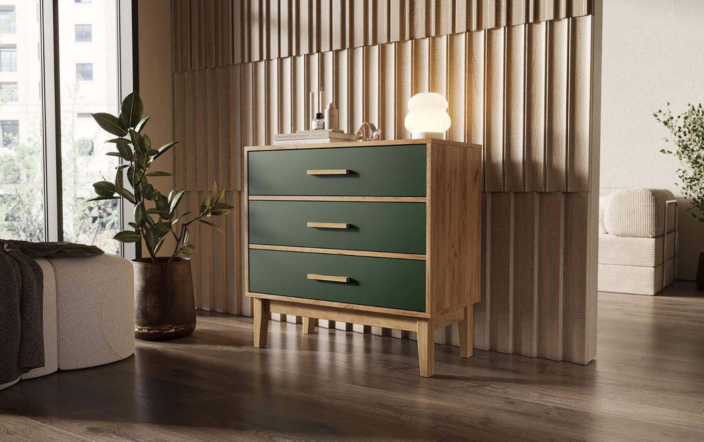 Комод Кельн 3 ящика (800) (Изумрудный, Дуб Крафт )