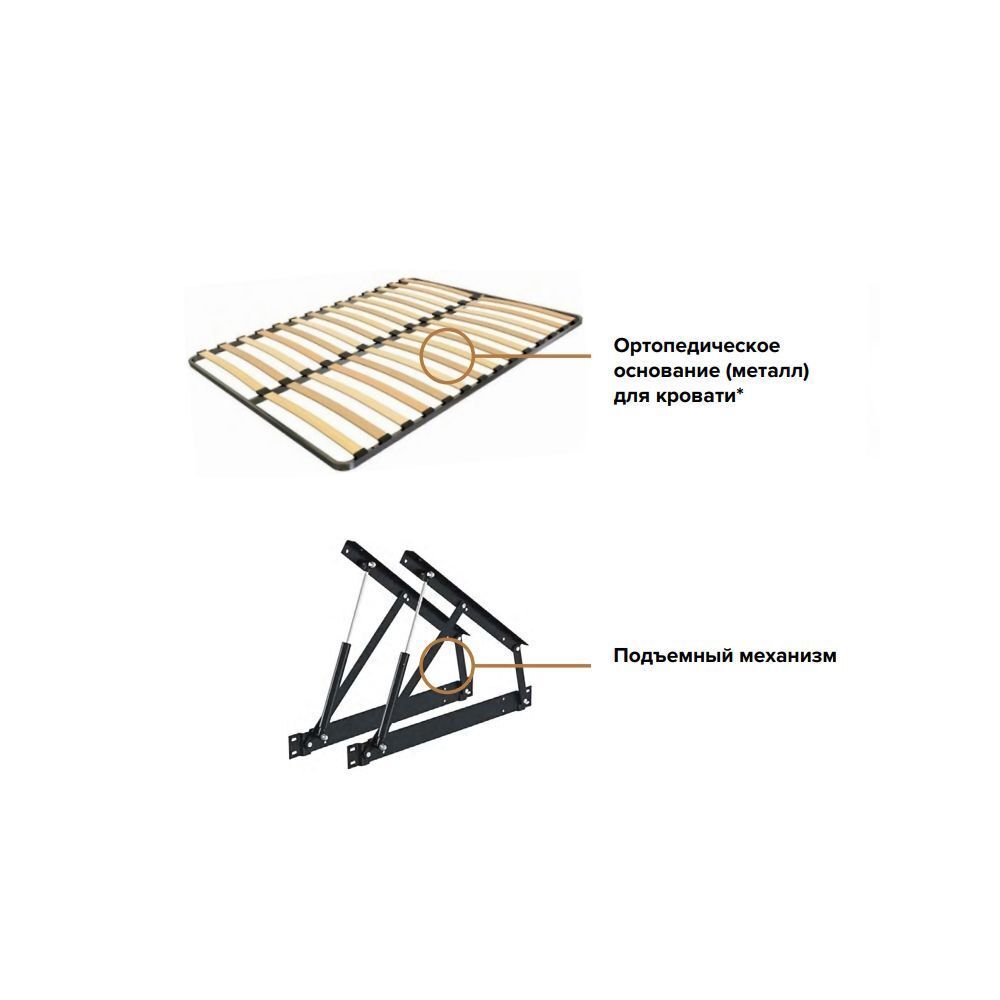 Комплектация: Кровать 1.6 м. Ортопедическое основание (металл) для кровати. Подъемный механизм для кровати.