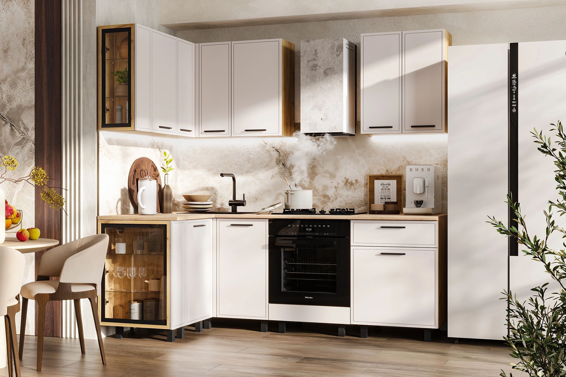 Стеновая панель (фартук), мойка, цоколь, карниз, подсветка, бытовая техника в стоимость кухонного гарнитура не входят и приобретаются дополнительно.