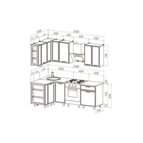 Верхние модули (ШхГхВ):