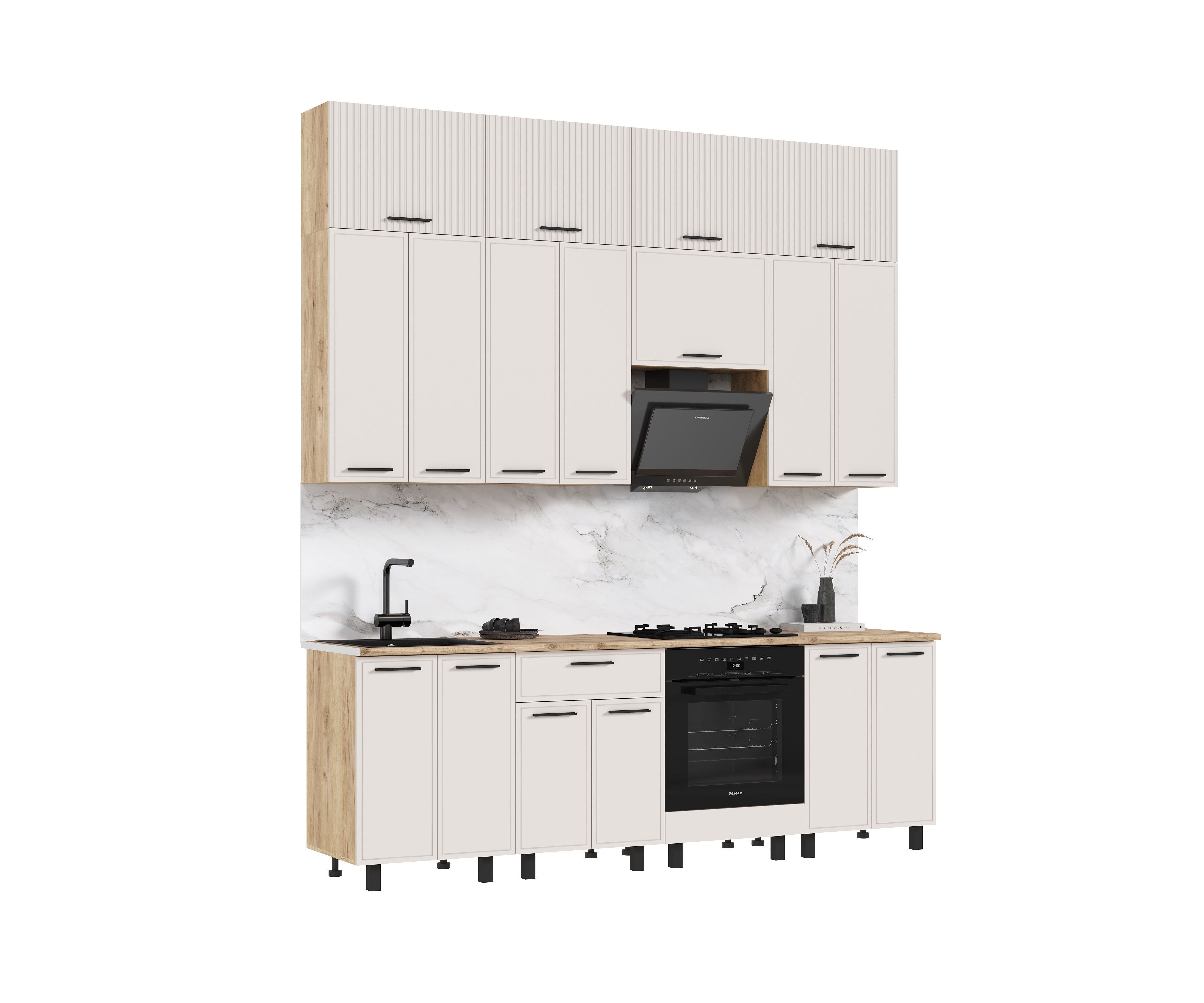 Стеновая панель (фартук), мойка, цоколь, карниз, подсветка, бытовая техника в стоимость кухонного гарнитура не входят и приобретаются дополнительно.