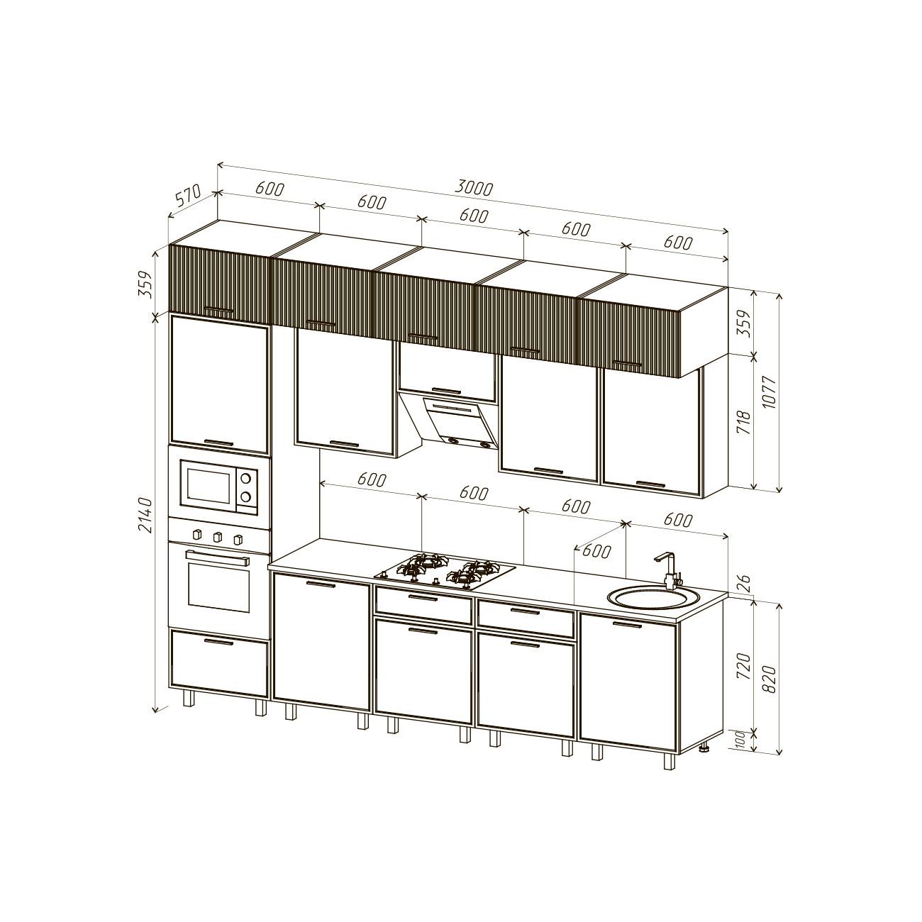 Верхние модули (ШхГхВ):