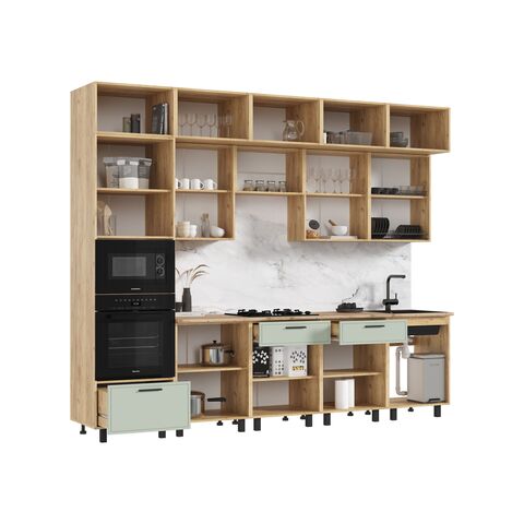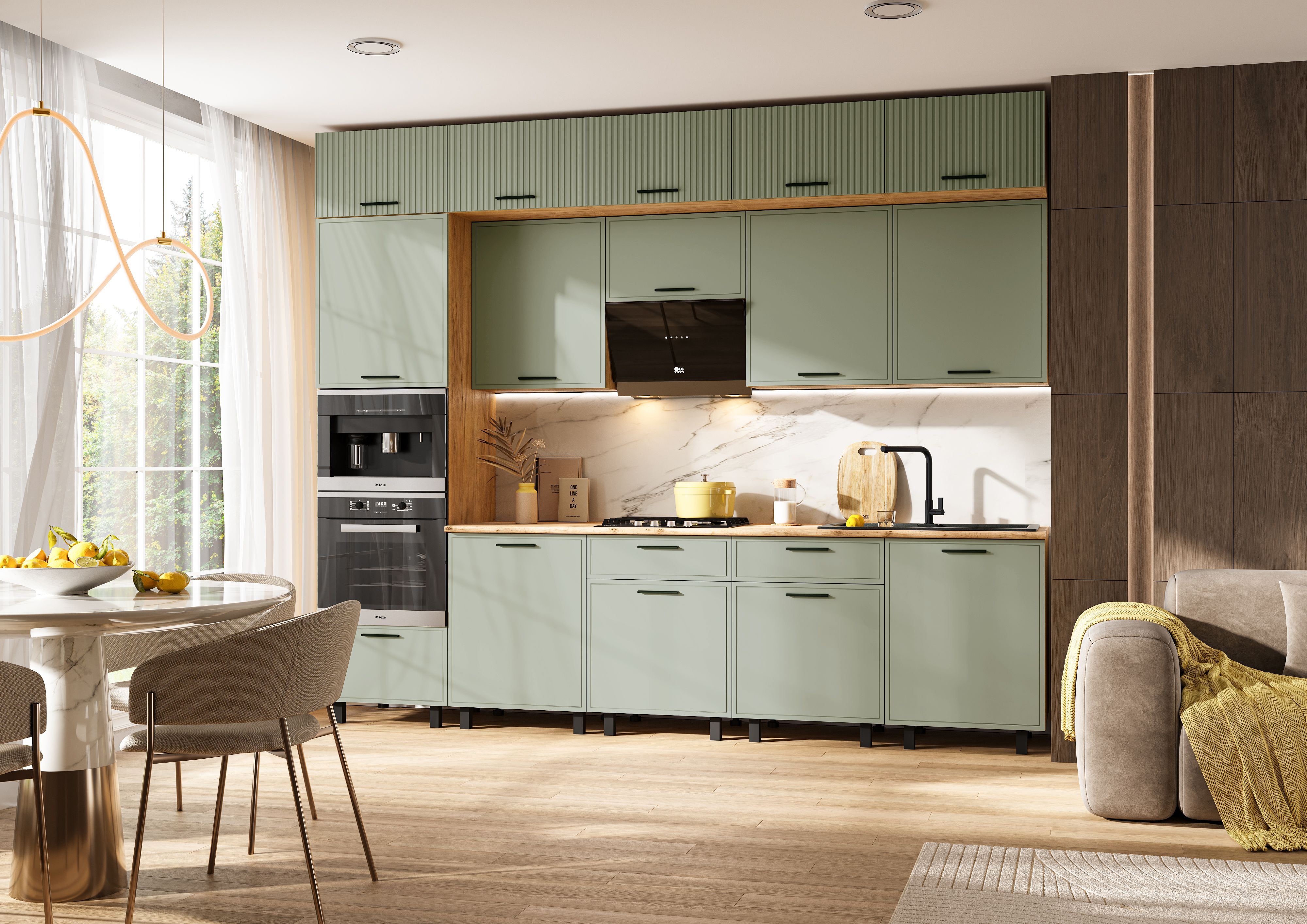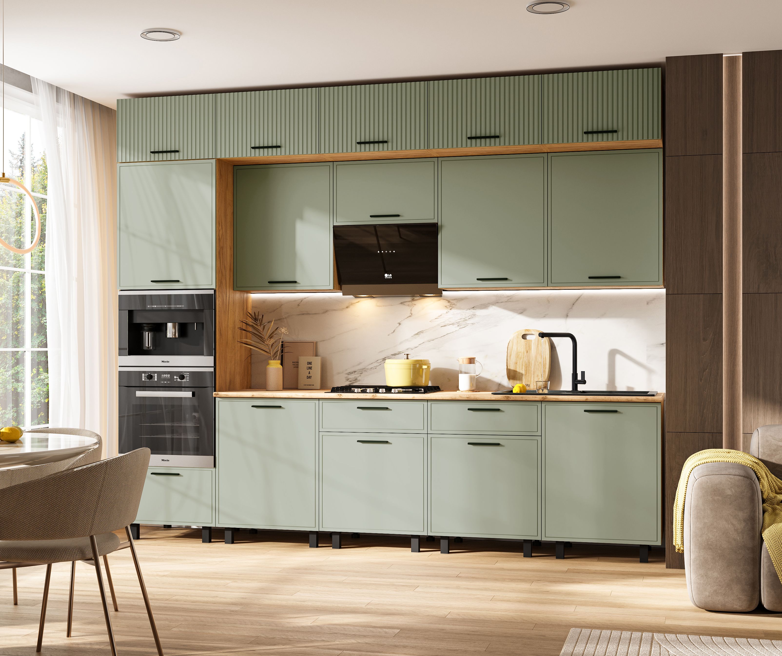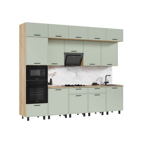 Кухня Бьянка 3,0/1080м (Олива софт, Дуб Крафт (Дуб вотан))