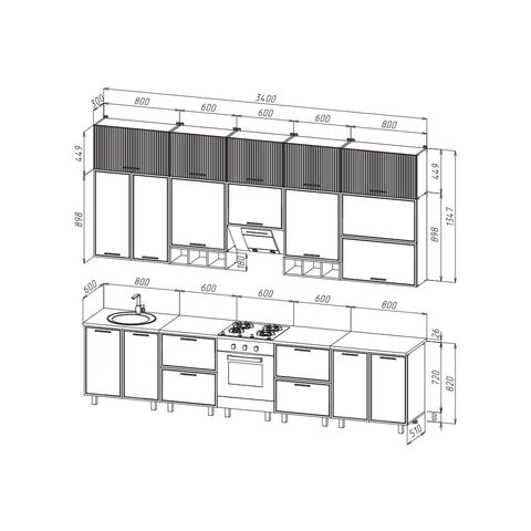 Нижние модули (ШхГхВ):