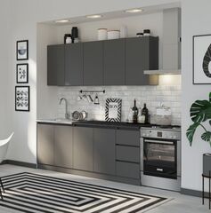 Стеновая панель (фартук), мойка, цоколь, карниз, подсветка, бытовая техника в стоимость кухонного гарнитура не входят и приобретаются дополнительно.