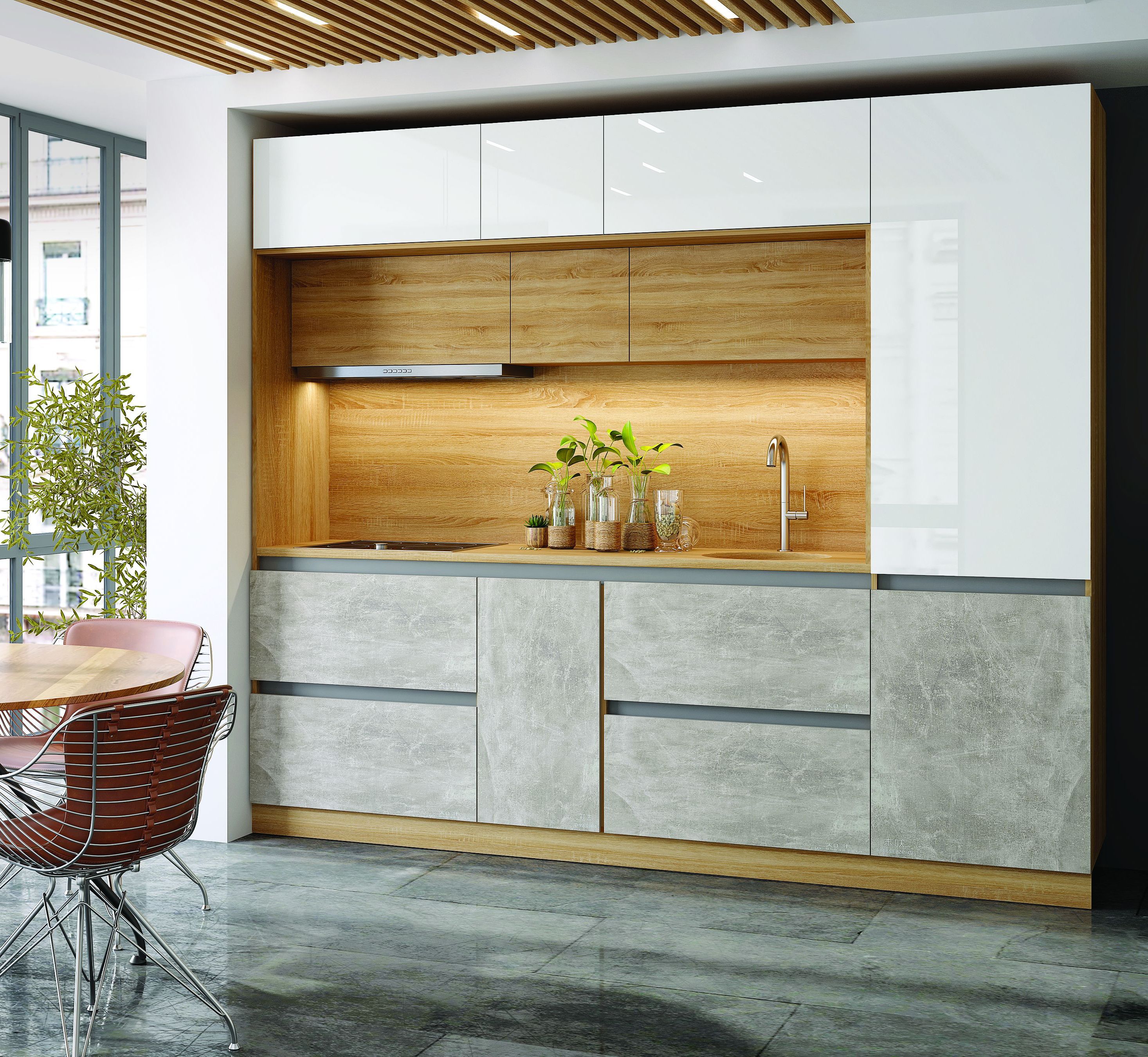 Центральная секция Карина 2050 (Белый глянцевый / Бетон светлый / Сонома) - 1 шт.