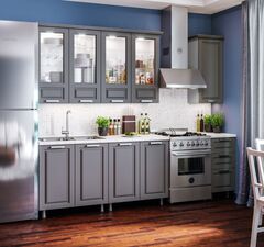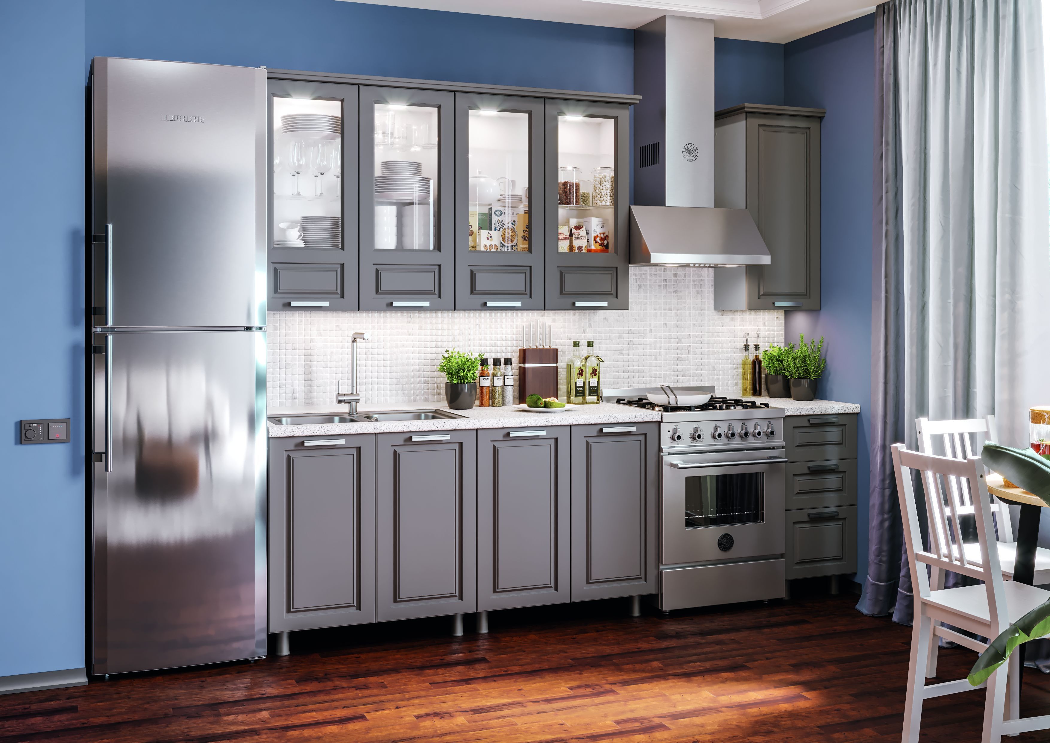Стеновая панель (фартук), мойка, цоколь, карниз, подсветка, бытовая техника в стоимость кухонного гарнитура не входят и приобретаются дополнительно.