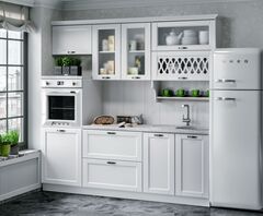 Стеновая панель (фартук), мойка, цоколь, карниз, подсветка, бытовая техника в стоимость кухонного гарнитура не входят и приобретаются дополнительно.
