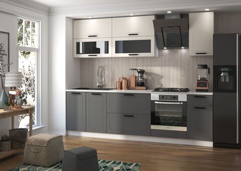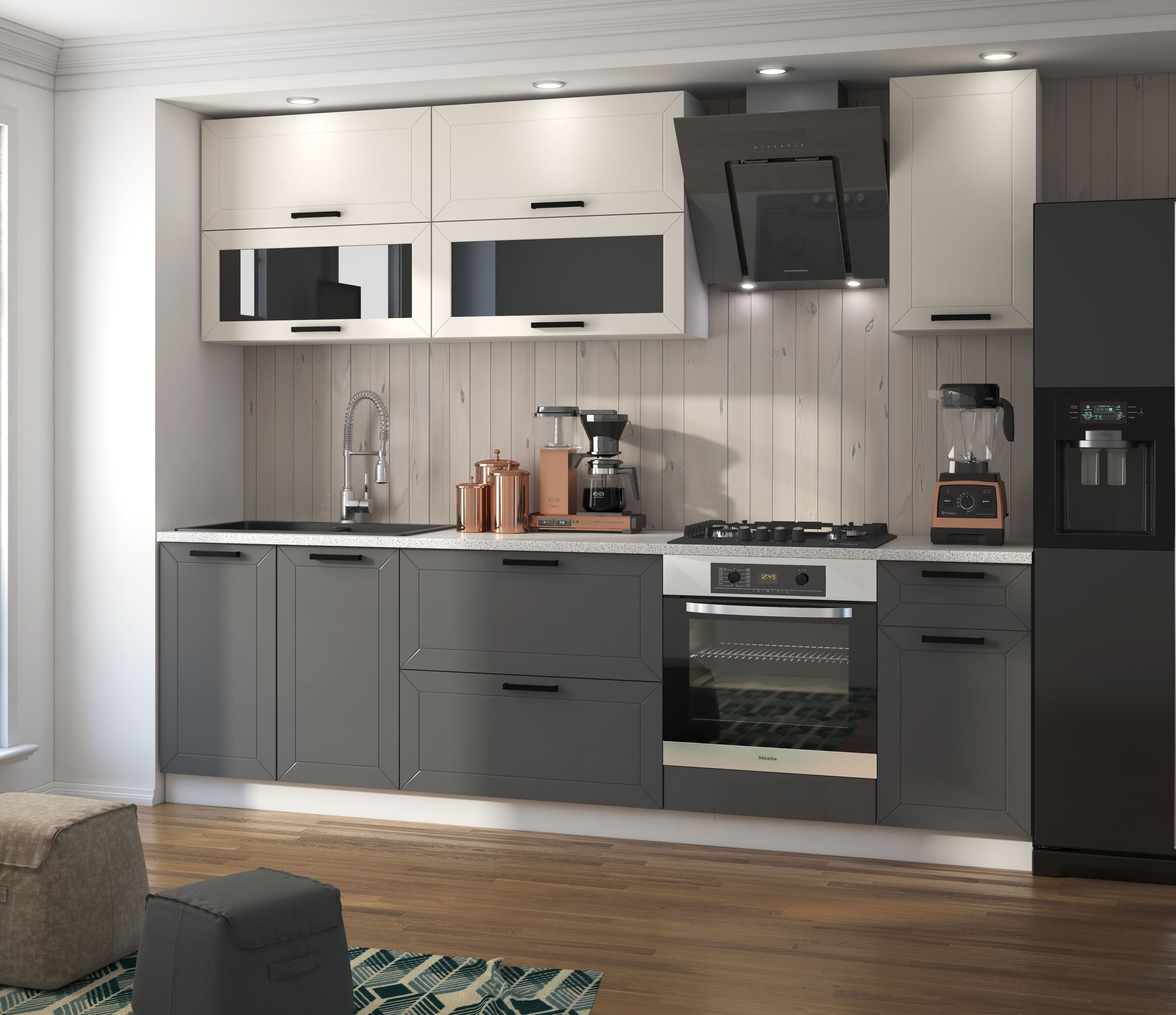 Стеновая панель (фартук), мойка, цоколь, карниз, подсветка, бытовая техника в стоимость кухонного гарнитура не входят и приобретаются дополнительно.
