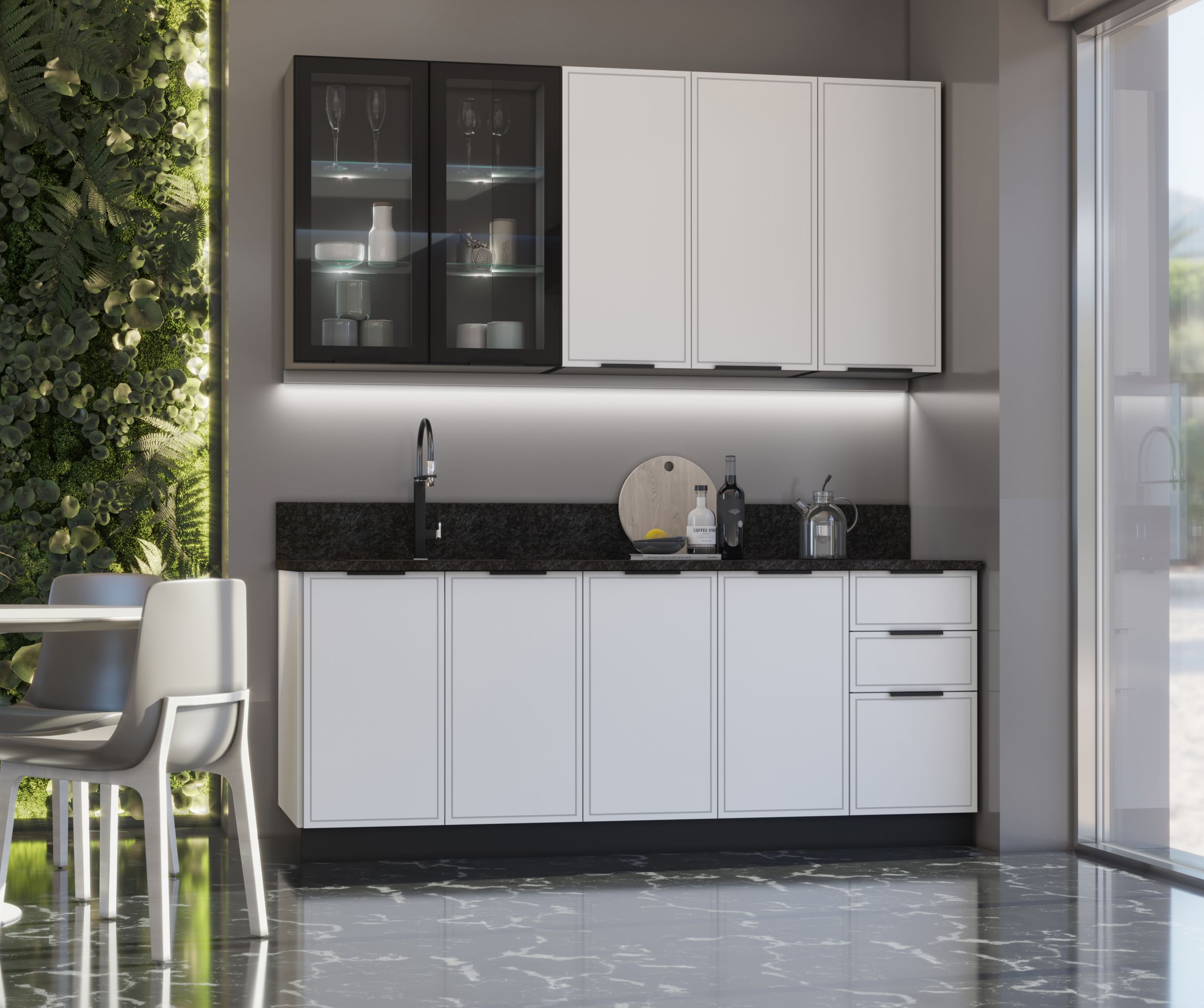 Стеновая панель (фартук), мойка, цоколь, карниз, подсветка, бытовая техника в стоимость кухонного гарнитура не входят и приобретаются дополнительно.