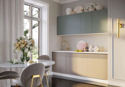 Стеновая панель (фартук), мойка, цоколь, карниз, подсветка, бытовая техника в стоимость кухонного гарнитура не входят и приобретаются дополнительно.