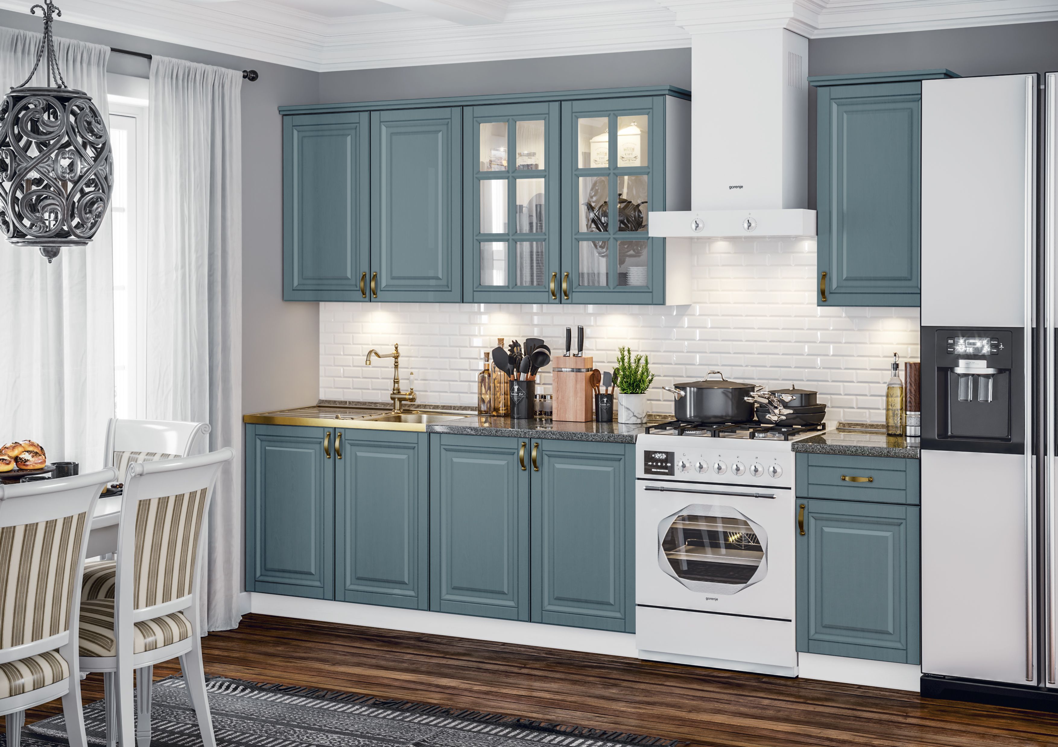 Стеновая панель (фартук), мойка, цоколь, карниз, подсветка, бытовая техника в стоимость кухонного гарнитура не входят и приобретаются дополнительно.