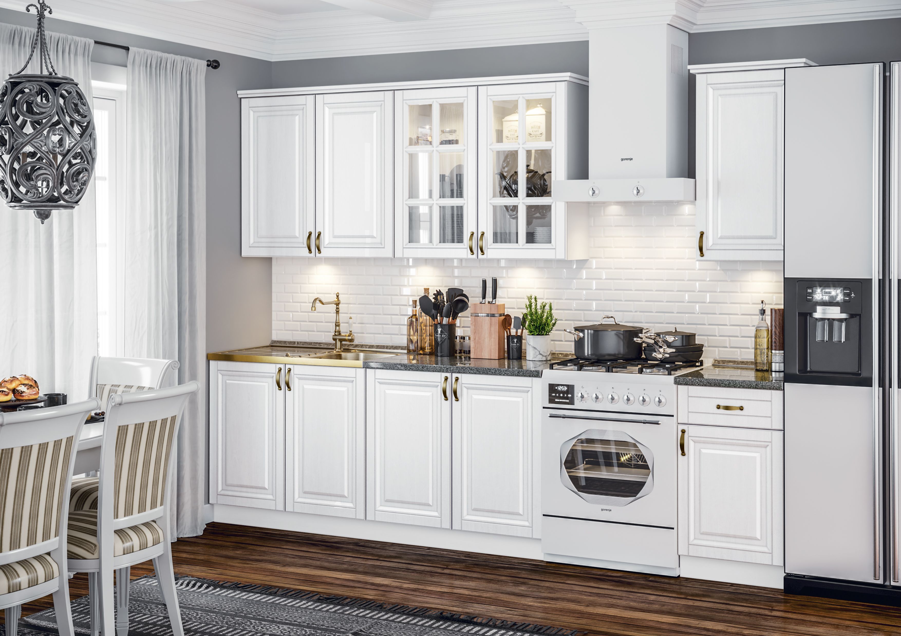 Стеновая панель (фартук), мойка, цоколь, карниз, подсветка, бытовая техника в стоимость кухонного гарнитура не входят и приобретаются дополнительно.