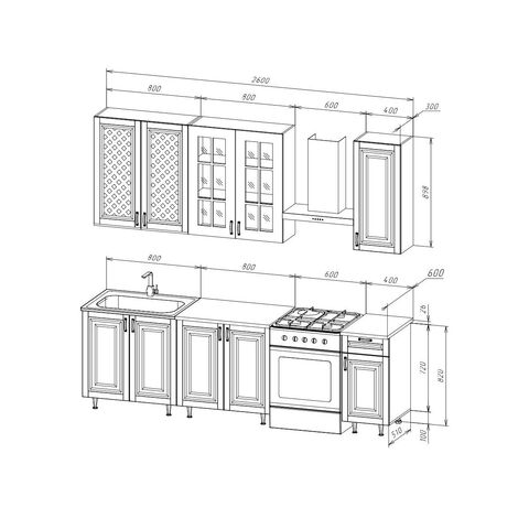 Стеновая панель (фартук), мойка, цоколь, карниз, подсветка, бытовая техника в стоимость кухонного гарнитура не входят и приобретаются дополнительно.