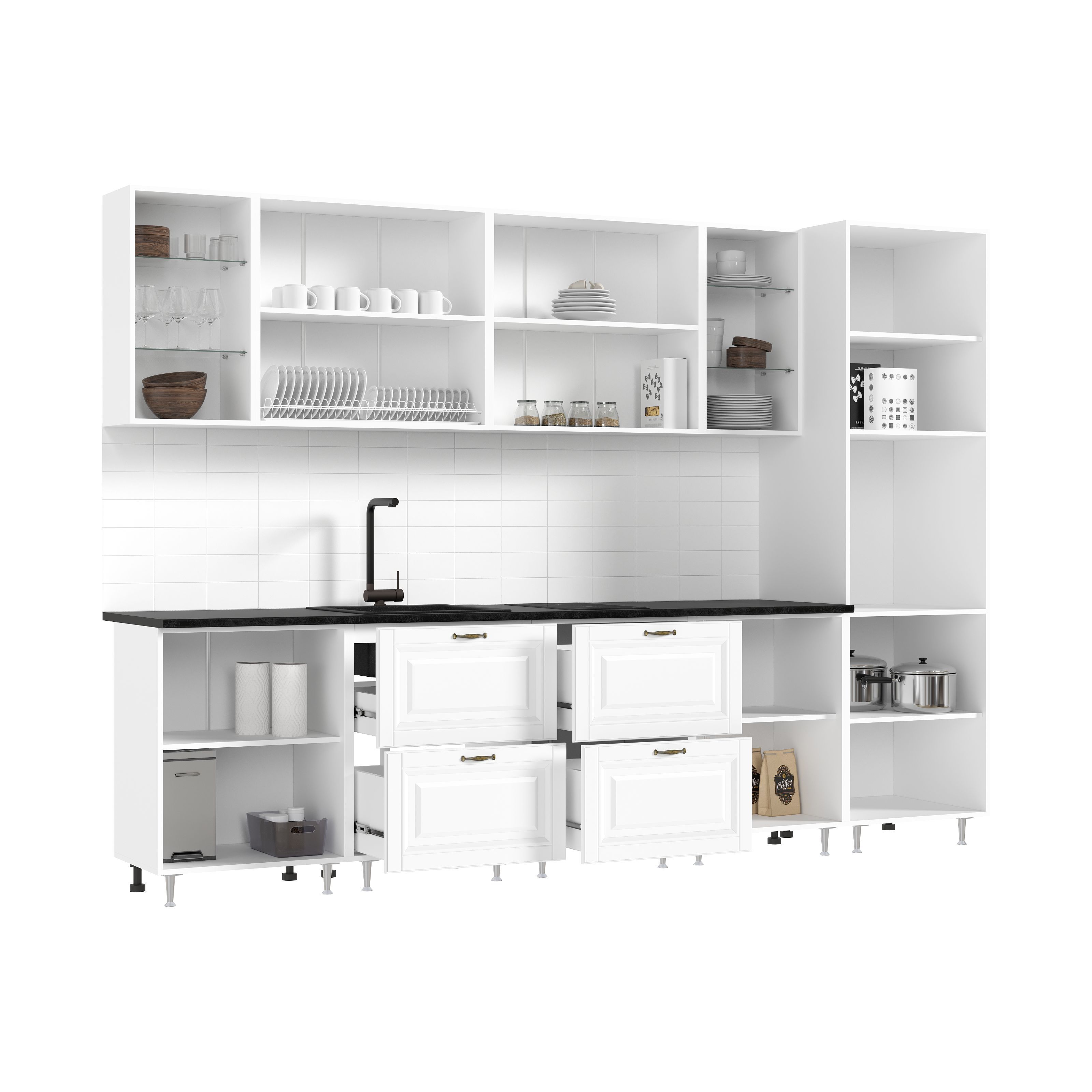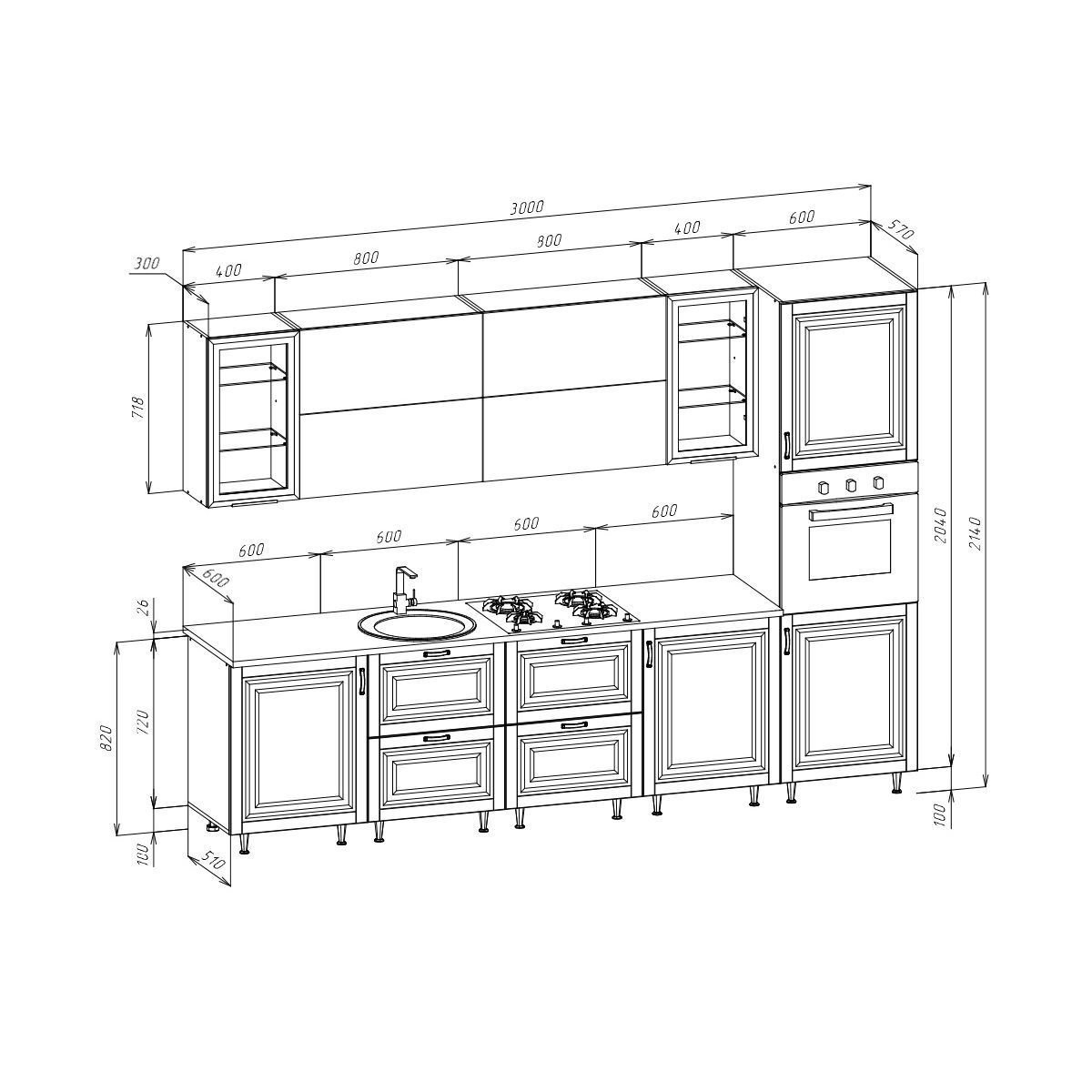 Стеновая панель (фартук), мойка, цоколь, карниз, подсветка, бытовая техника в стоимость кухонного гарнитура не входят и приобретаются дополнительно.