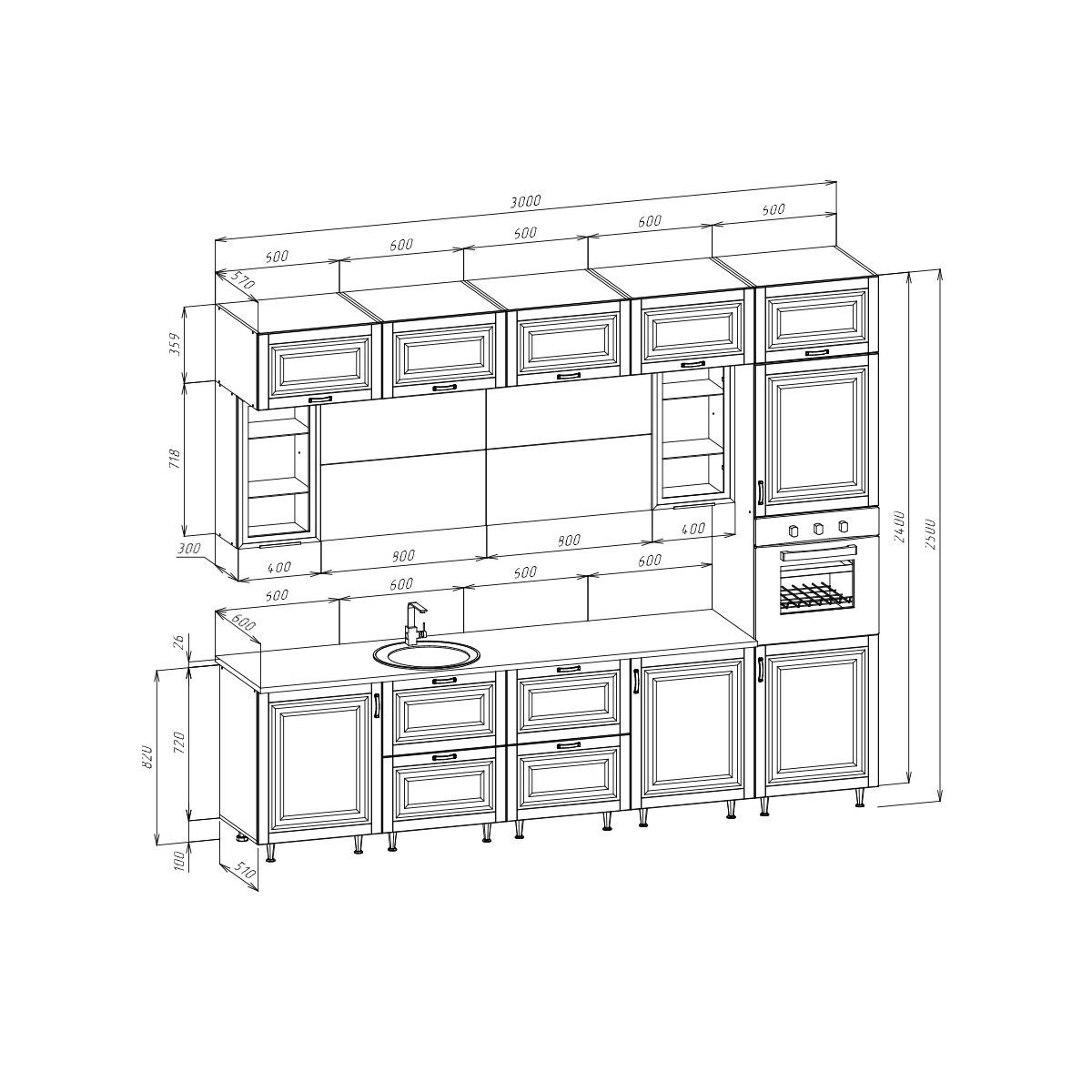 Стеновая панель (фартук), мойка, цоколь, карниз, подсветка, бытовая техника в стоимость кухонного гарнитура не входят и приобретаются дополнительно.