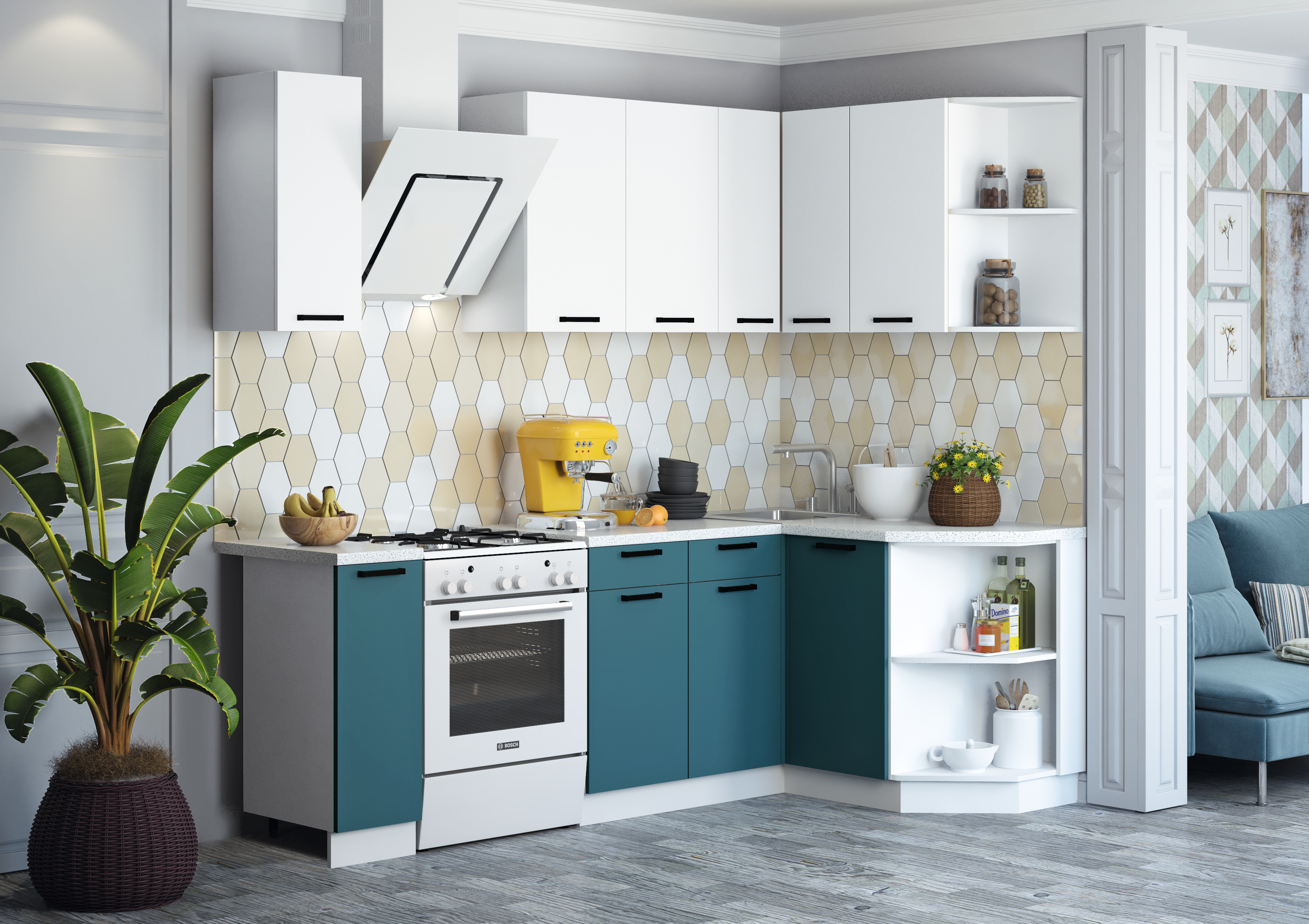 Стеновая панель (фартук), мойка, цоколь, карниз, подсветка, бытовая техника в стоимость кухонного гарнитура не входят и приобретаются дополнительно.