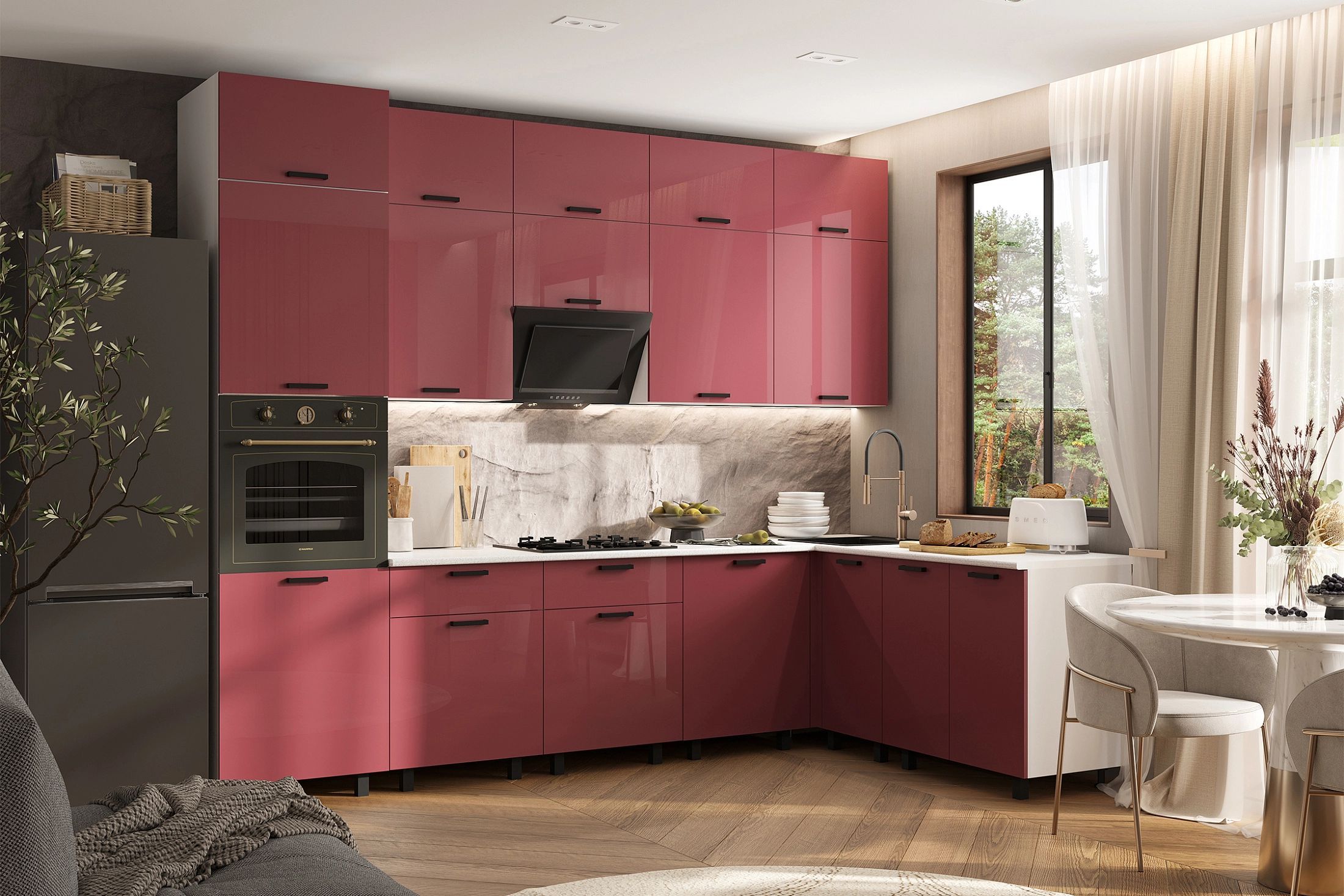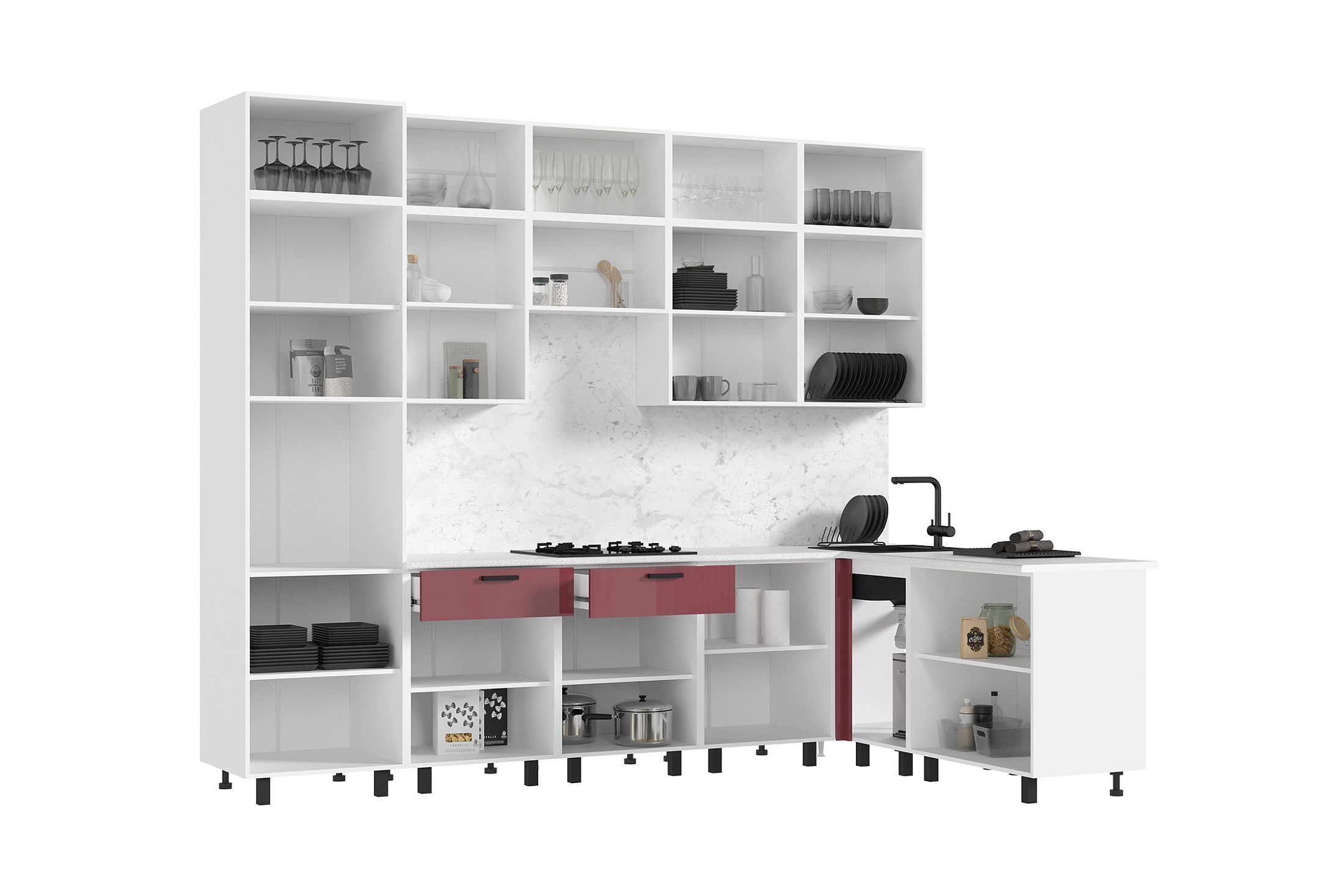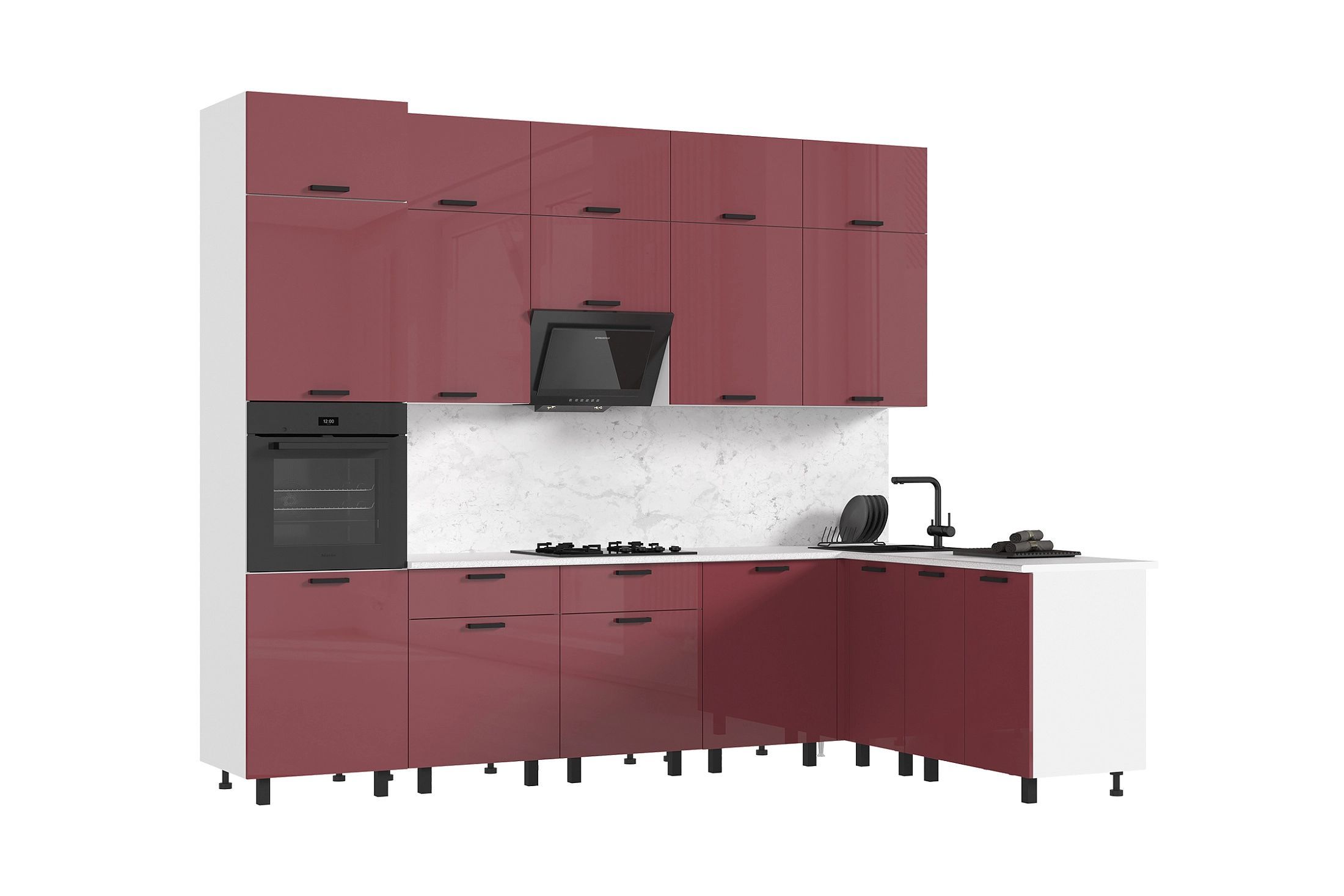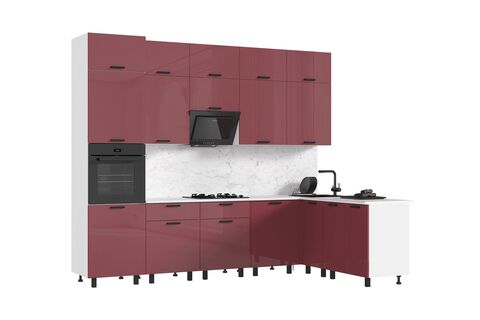 Кухня Техно 3,0х1,8/1080м Компоновка №6 (Марсала глянец, Белый (Антарес))