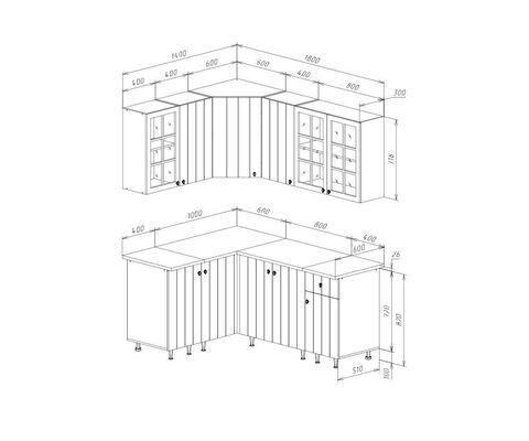 Высота нижних модулей указана с учетом столешницы.
