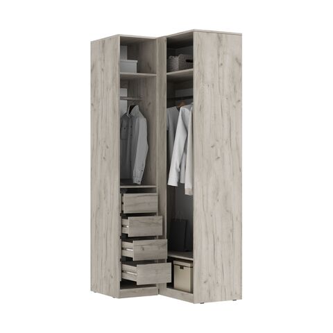 Ларго Шкаф угловой (РУЧКИ 100 см.) 1 полка 4 ящика (Кашемир, Дуб Крафт серый)