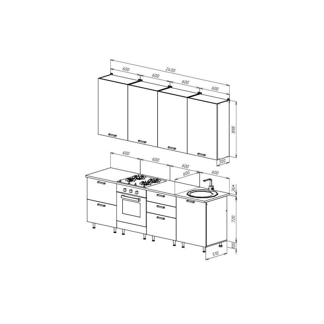 Стеновая панель (фартук), мойка, цоколь, карниз, подсветка, бытовая техника в стоимость кухонного гарнитура не входят и приобретаются дополнительно.
