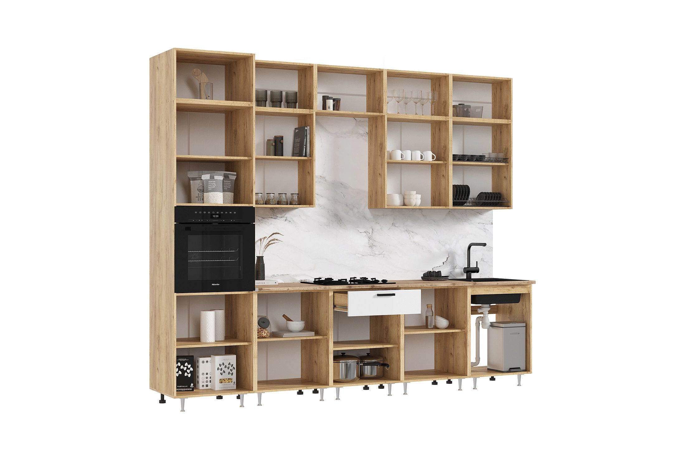 Стеновая панель (фартук), мойка, цоколь, карниз, подсветка, бытовая техника в стоимость кухонного гарнитура не входят и приобретаются дополнительно.