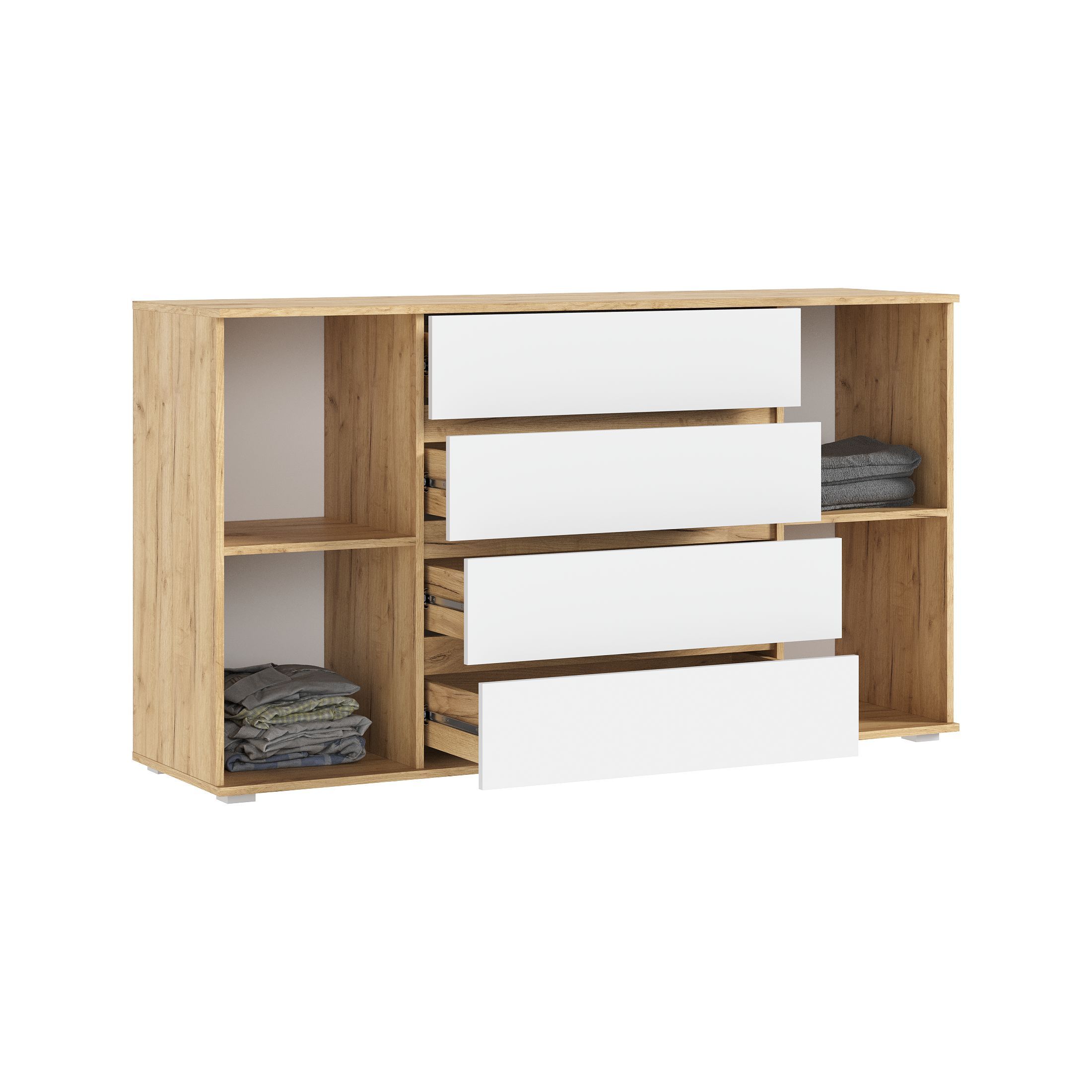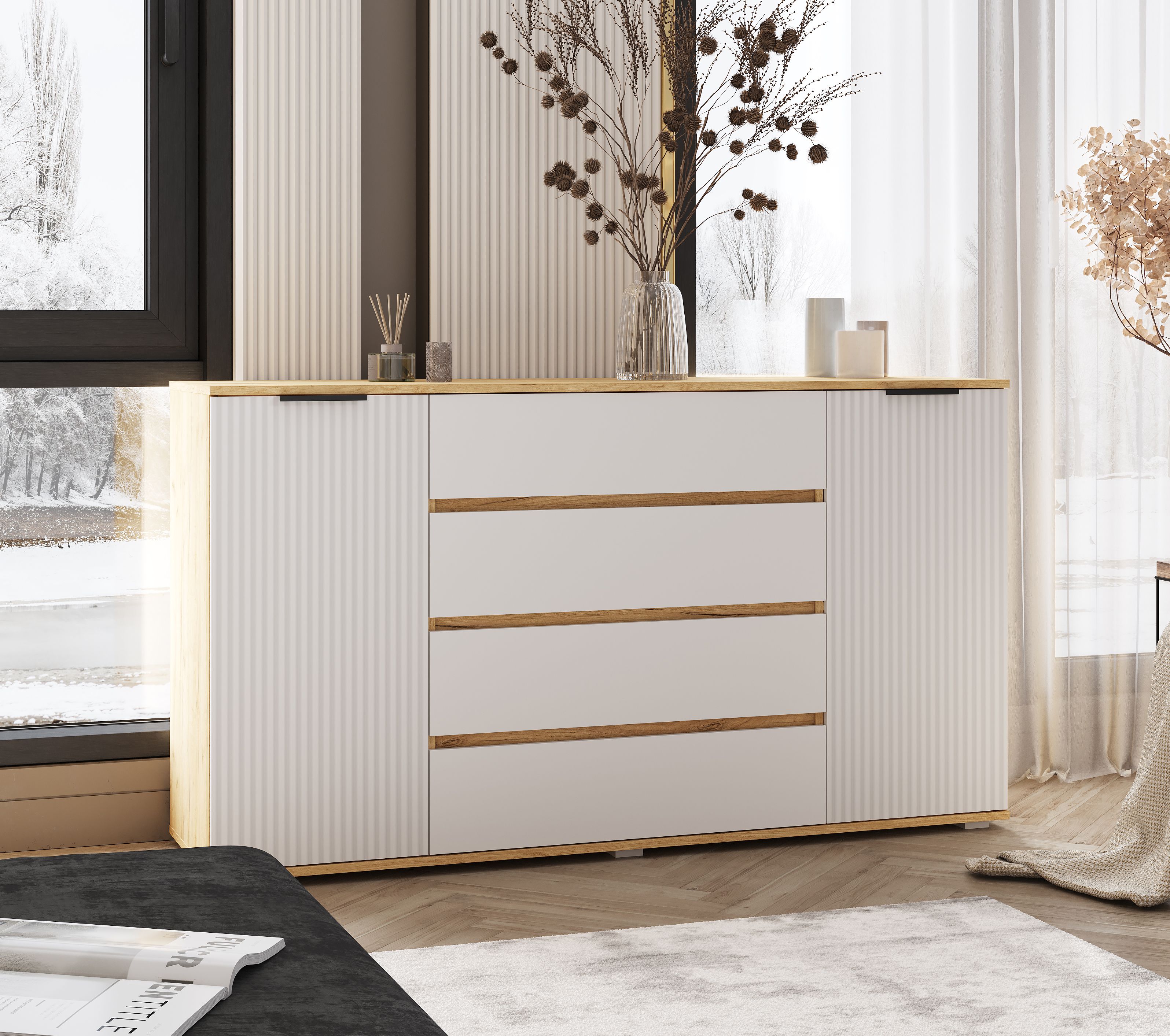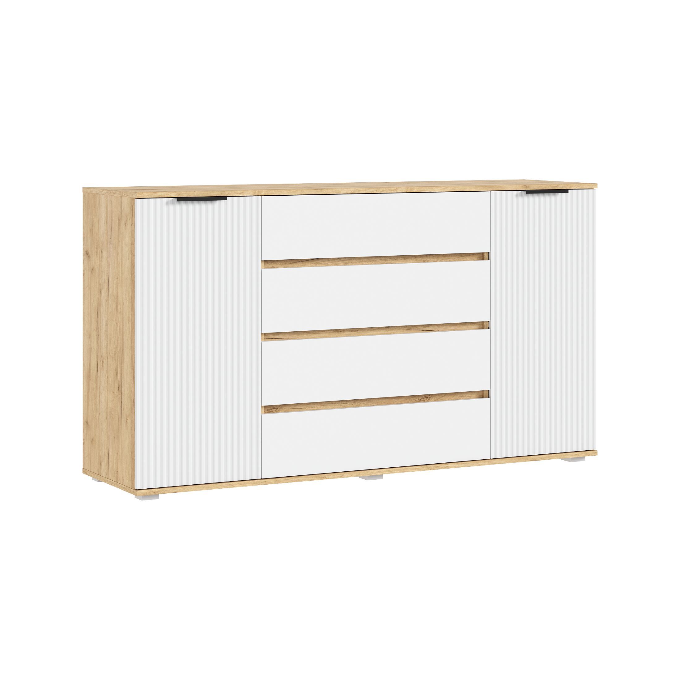 Марвэл Комод 2 двери 4 ящика (1600) (Браш Вайт, Дуб Крафт)