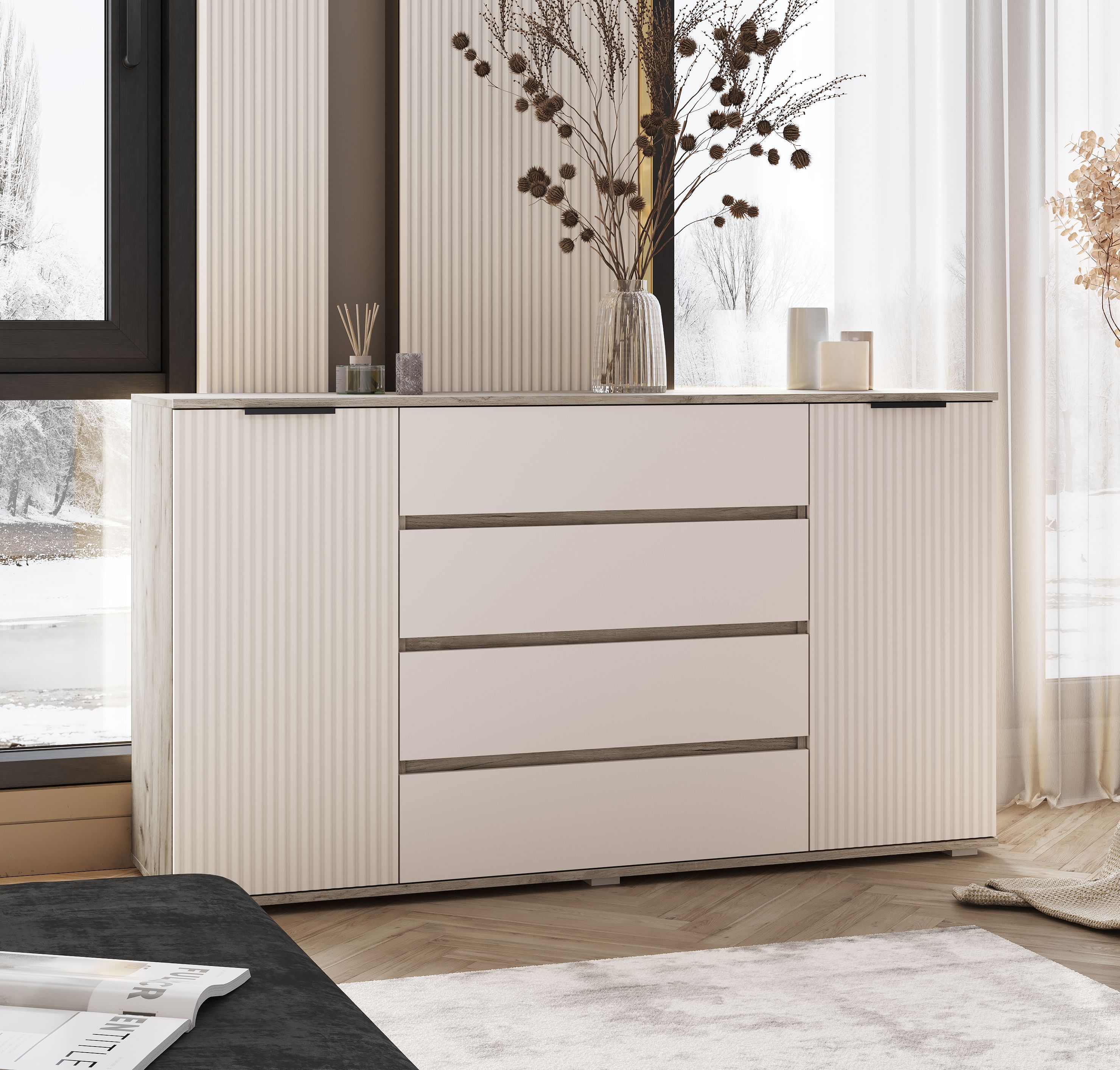 Марвэл Комод 2 двери 4 ящика (1600) (Кашемир, Дуб Крафт серый)