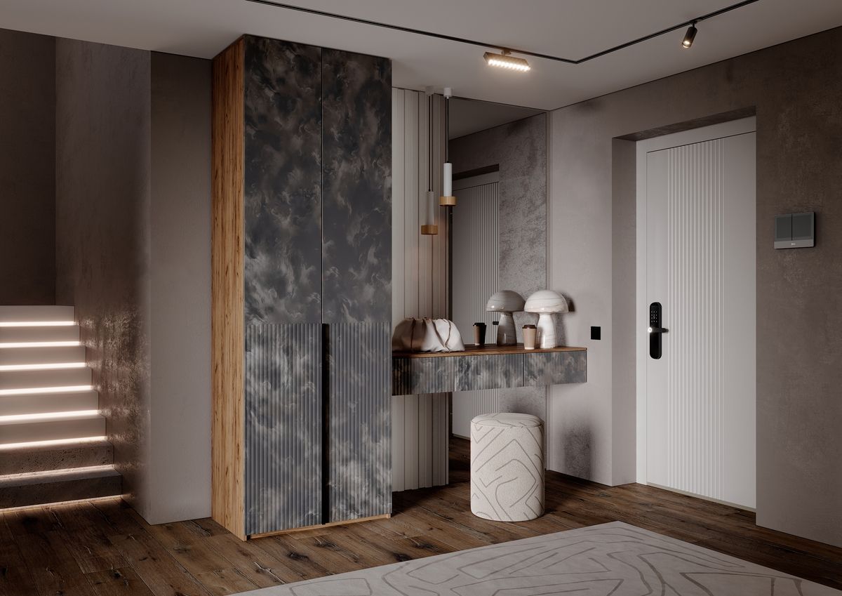 Марвэл Шкаф 2х. ств (доп ящики) и полка косметическая (Мальта грей, Дуб Крафт)