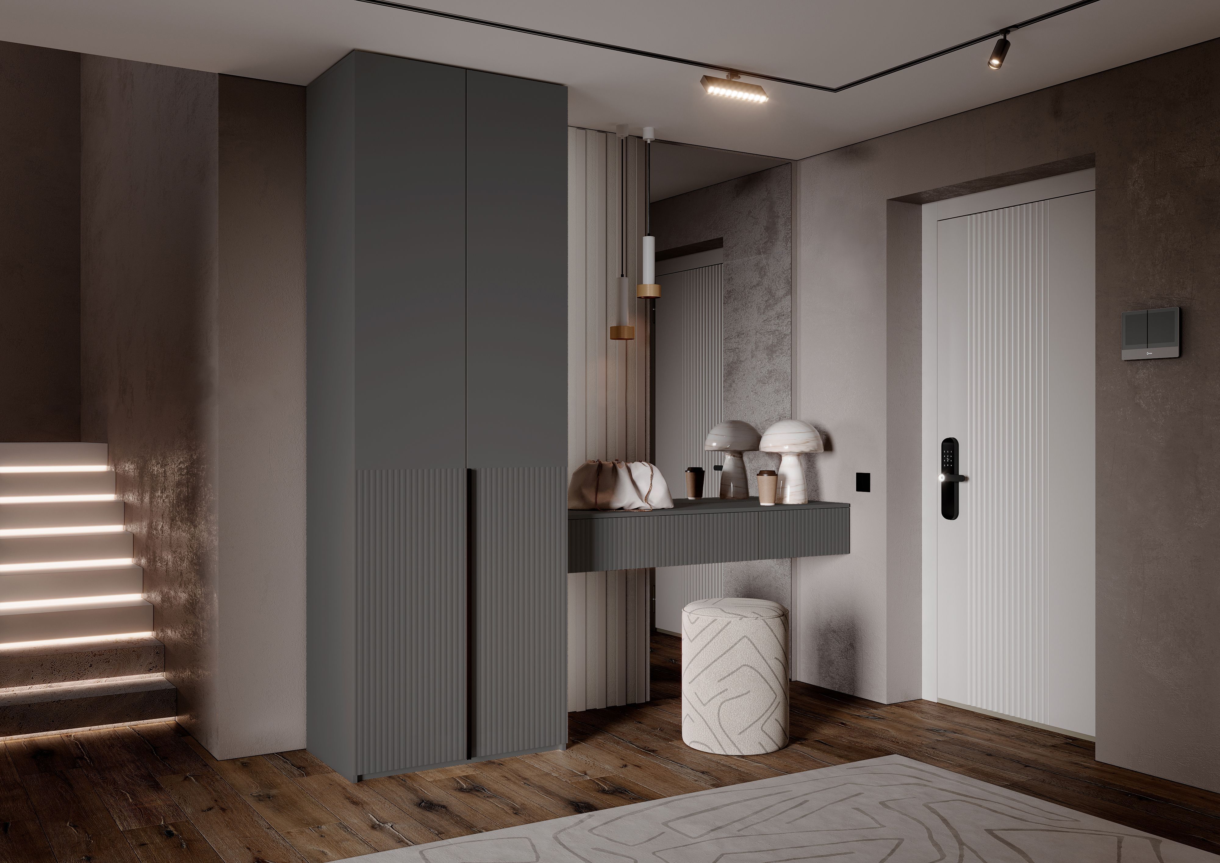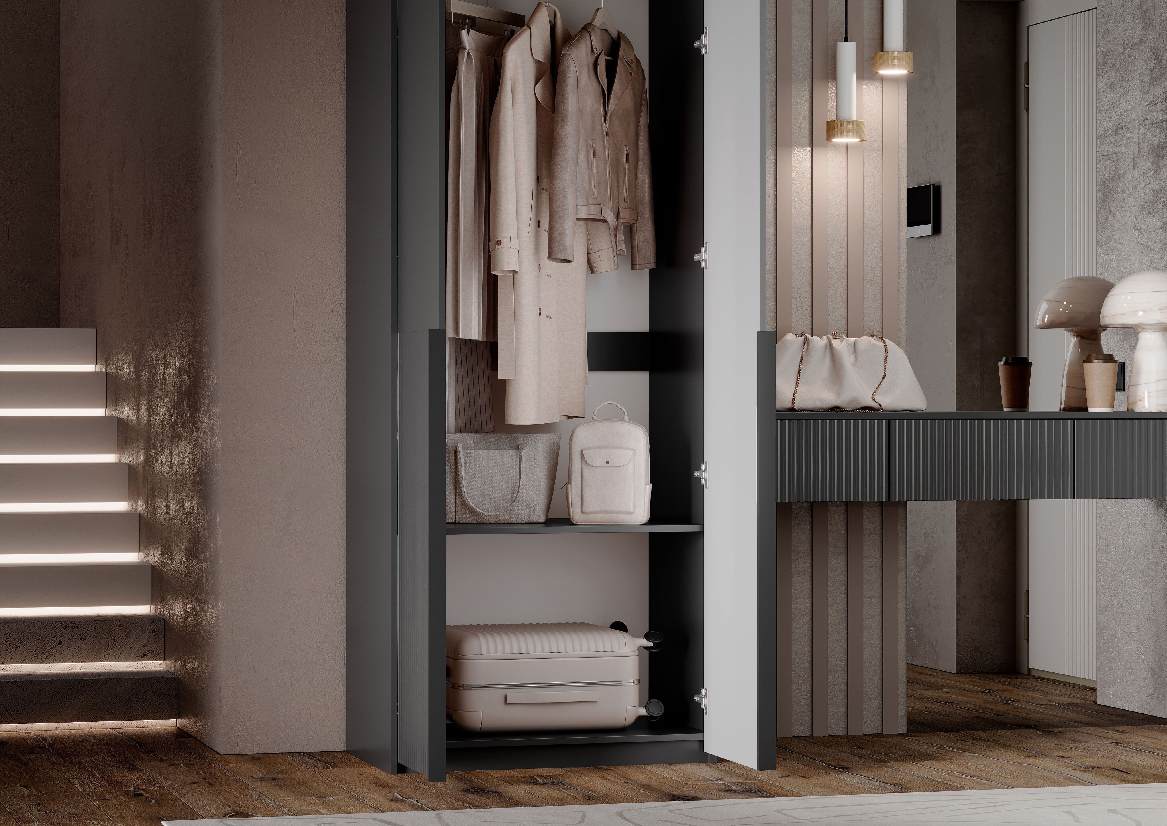 Марвэл Шкаф 2х. ств и полка косметическая (Браш Графит, Графит)