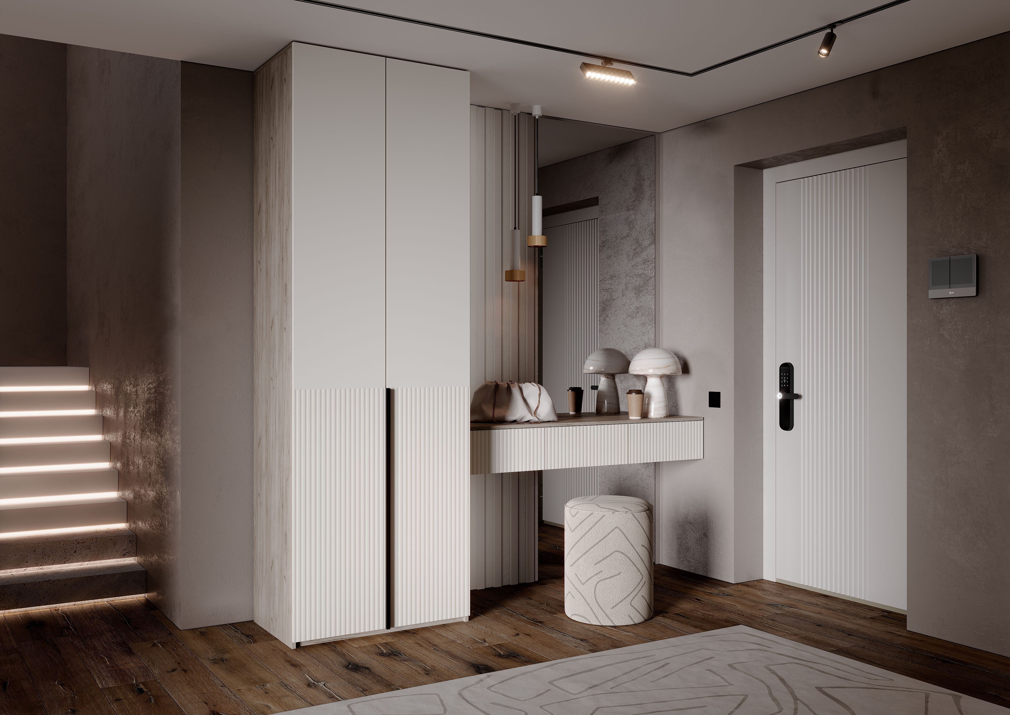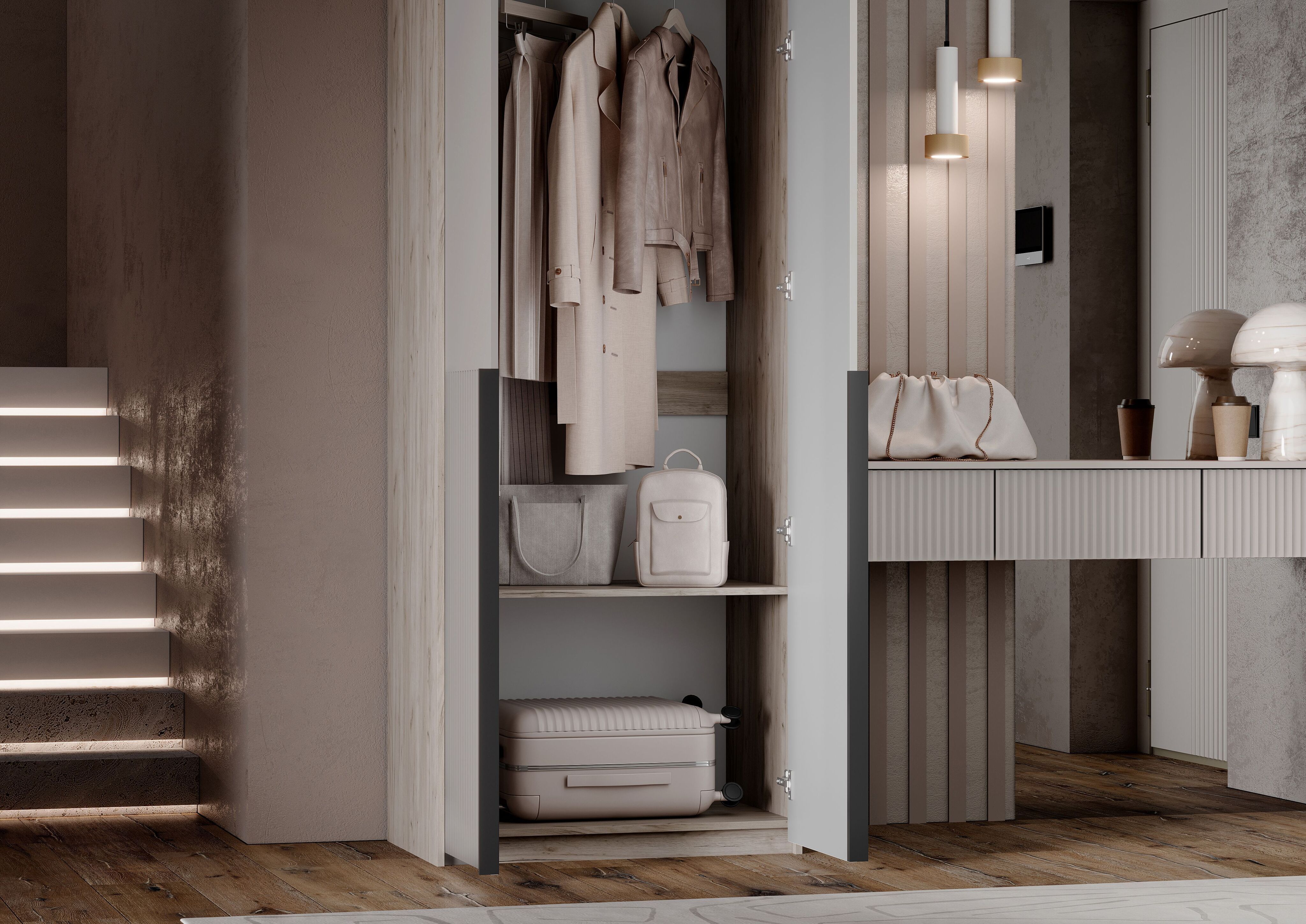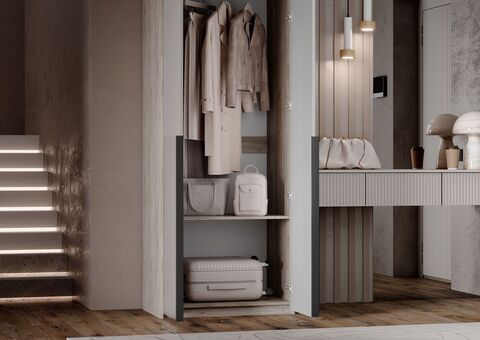Марвэл Шкаф 2х. ств и полка косметическая (Кашемир, Дуб крафт серый)