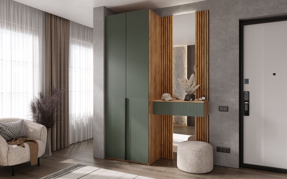 Марвэл Шкаф 2х. ств и тумба с зеркалом (Браш Мени Грин, Дуб Крафт)