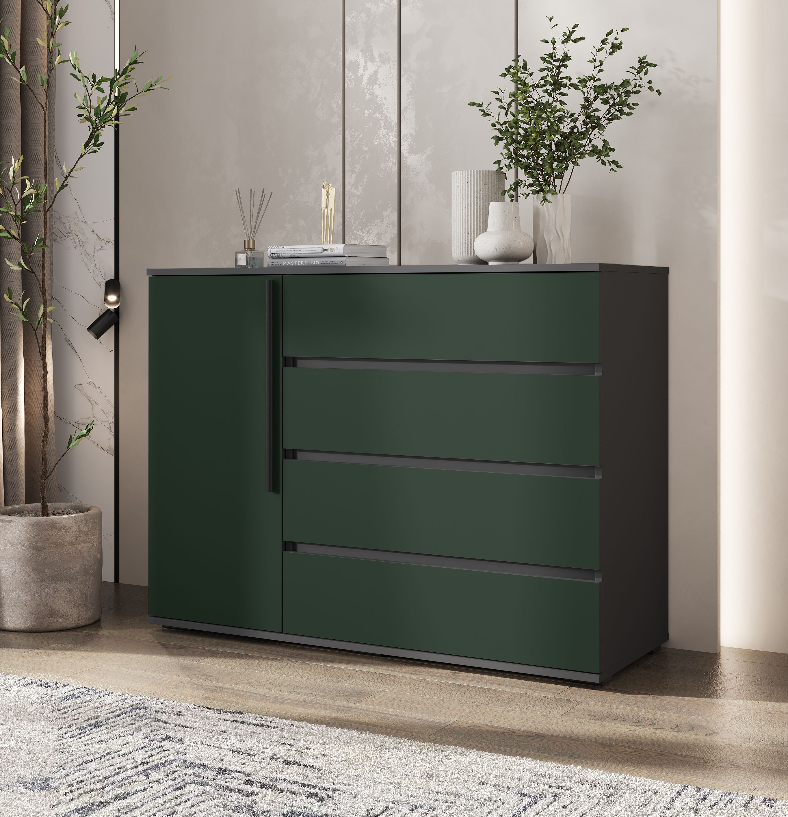 Норд Комод 1 дверь 4 ящика (1200) (Изумрудный (КРОМКА ГРАФИТ), Графит)
