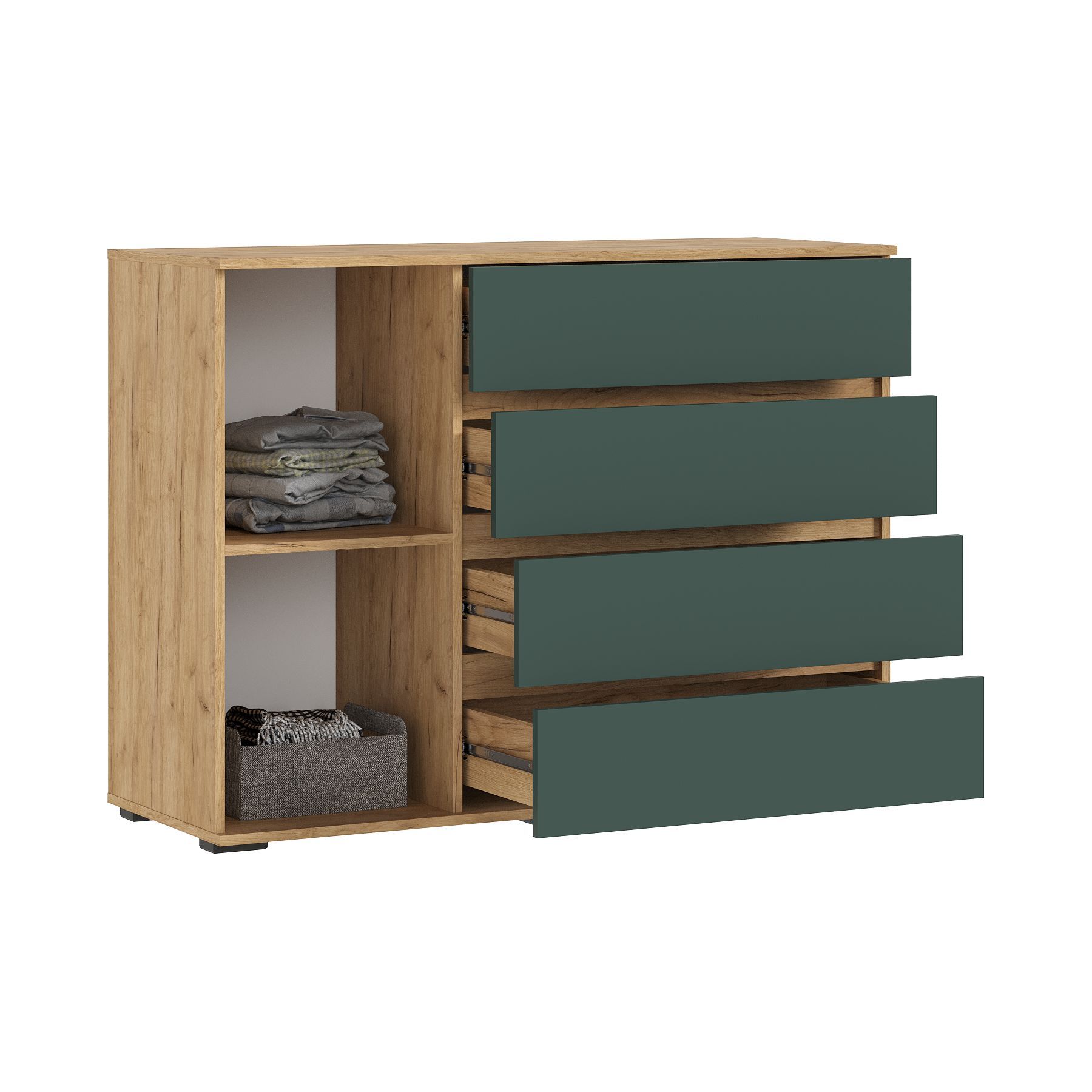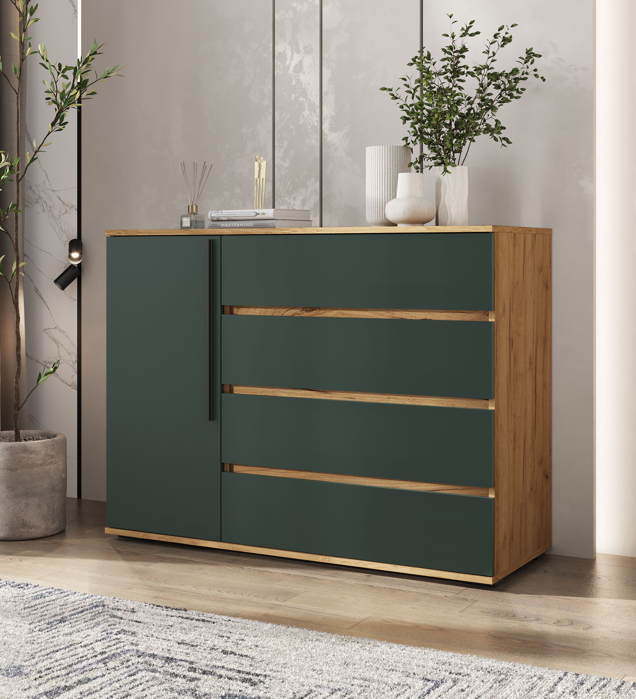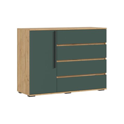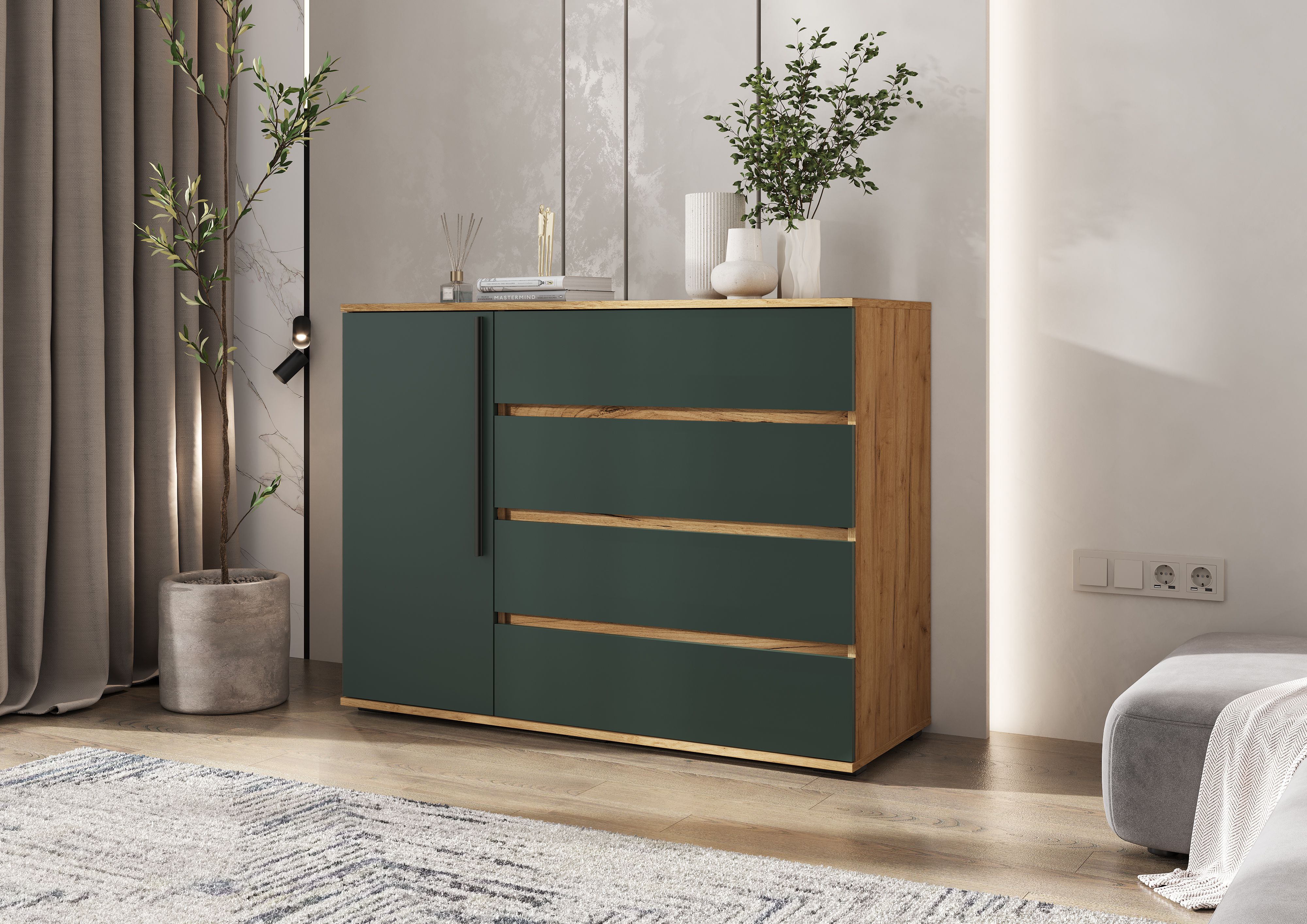 Норд Комод 1 дверь 4 ящика (1200) (Изумрудный (КРОМКА ИЗУМРУД), Дуб Крафт)