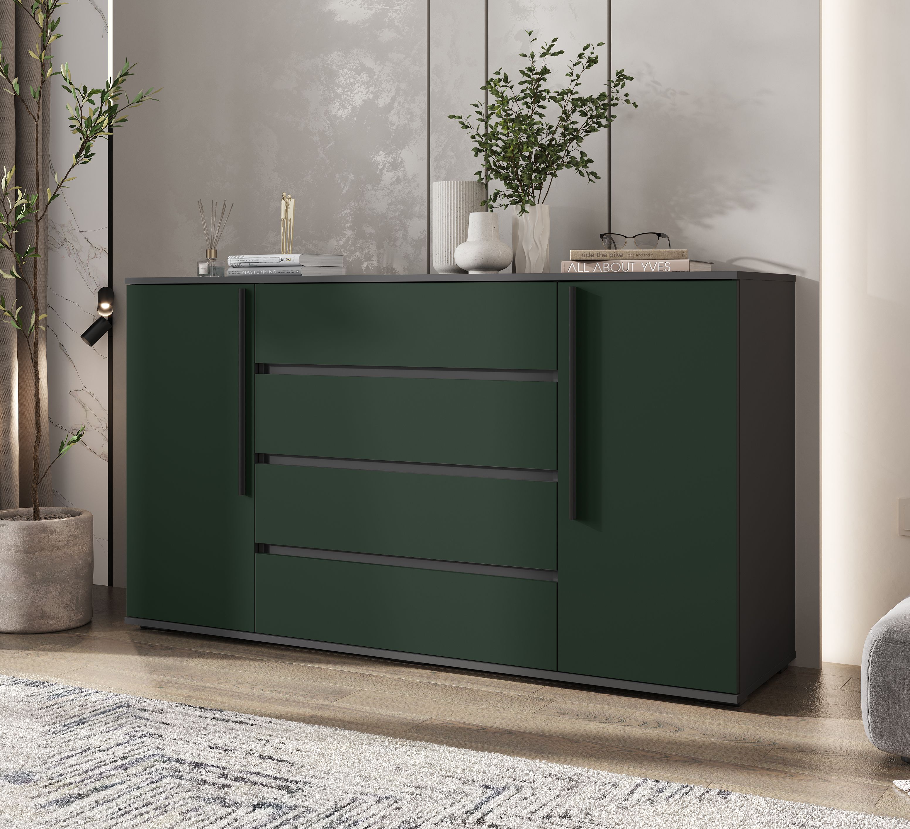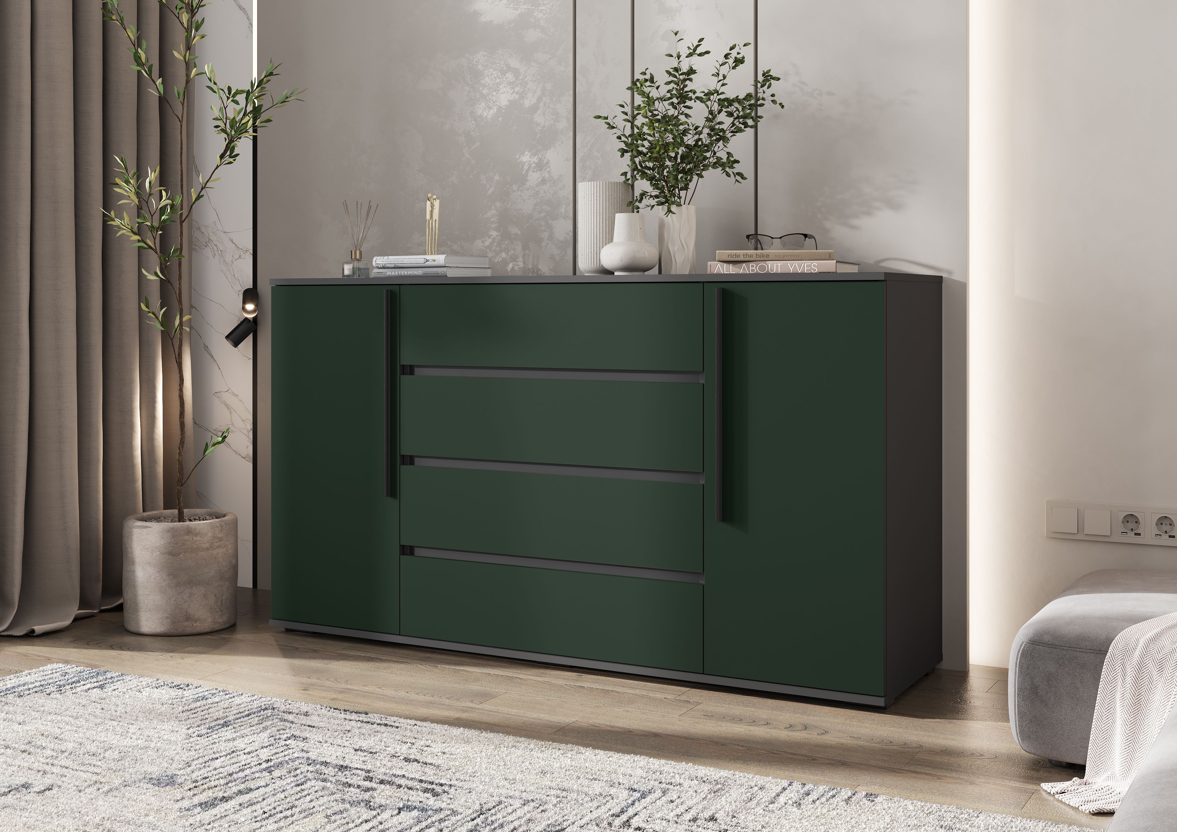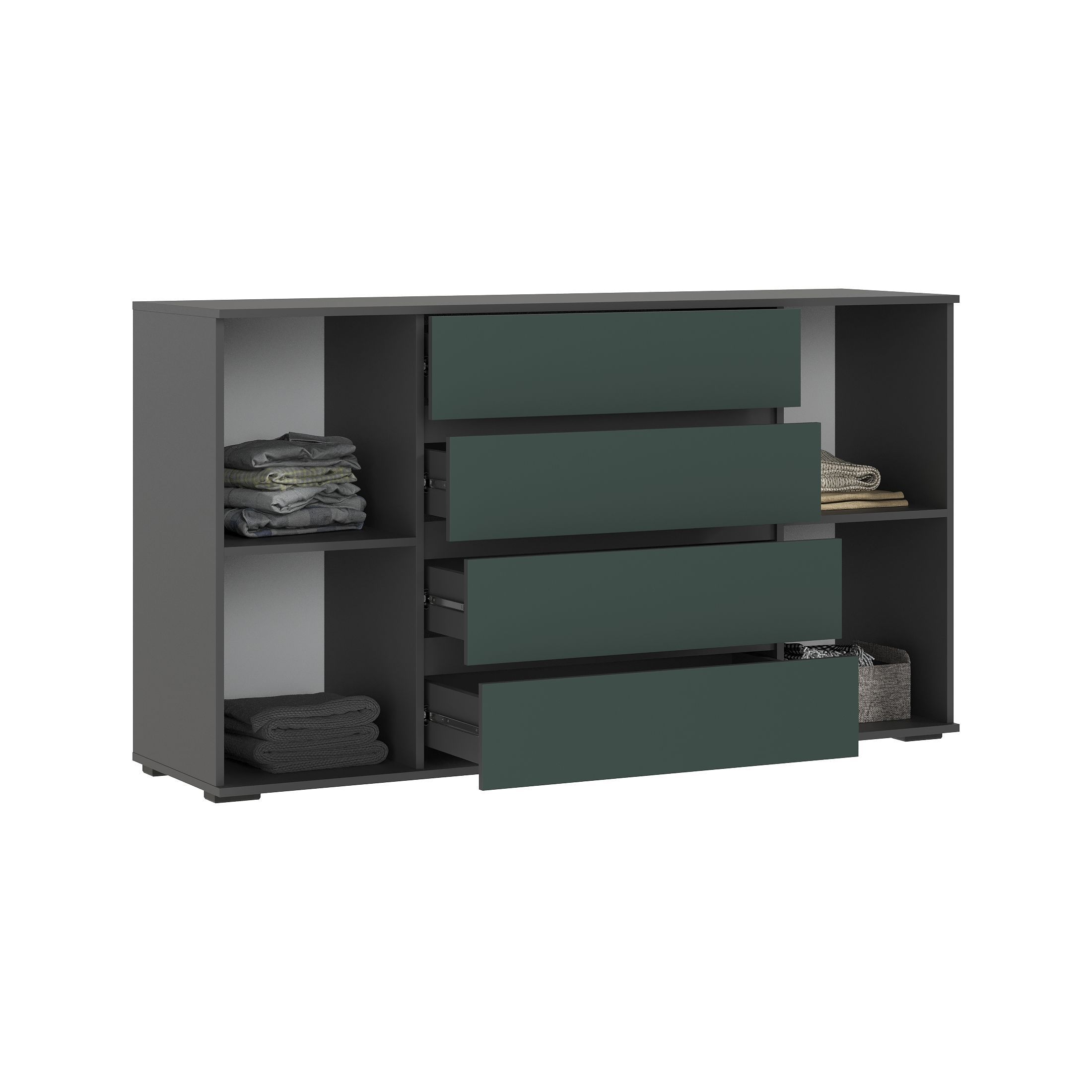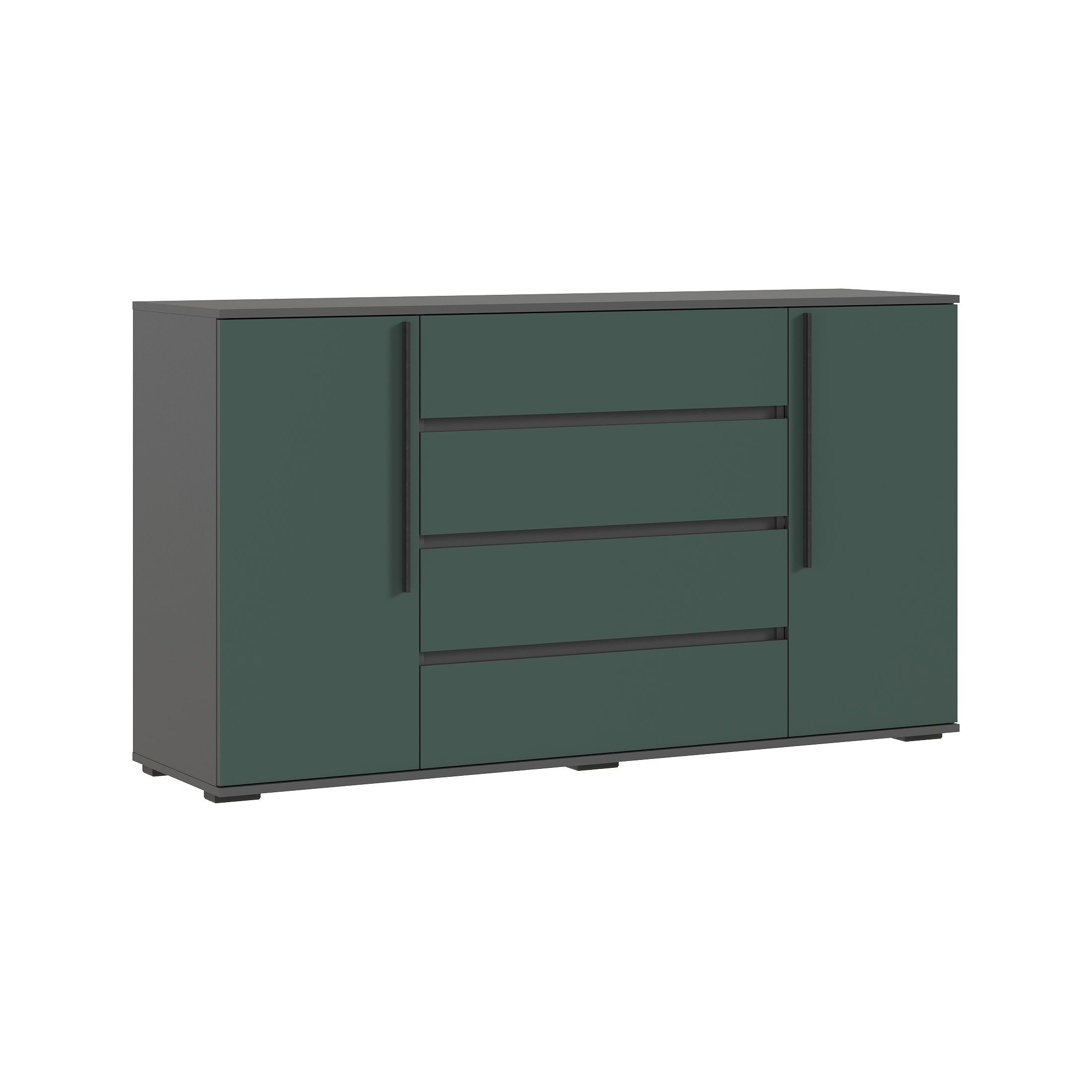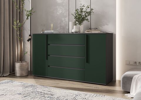 Норд Комод 2 двери 4 ящика (1600) (Изумрудный (КРОМКА ГРАФИТ), Графит)