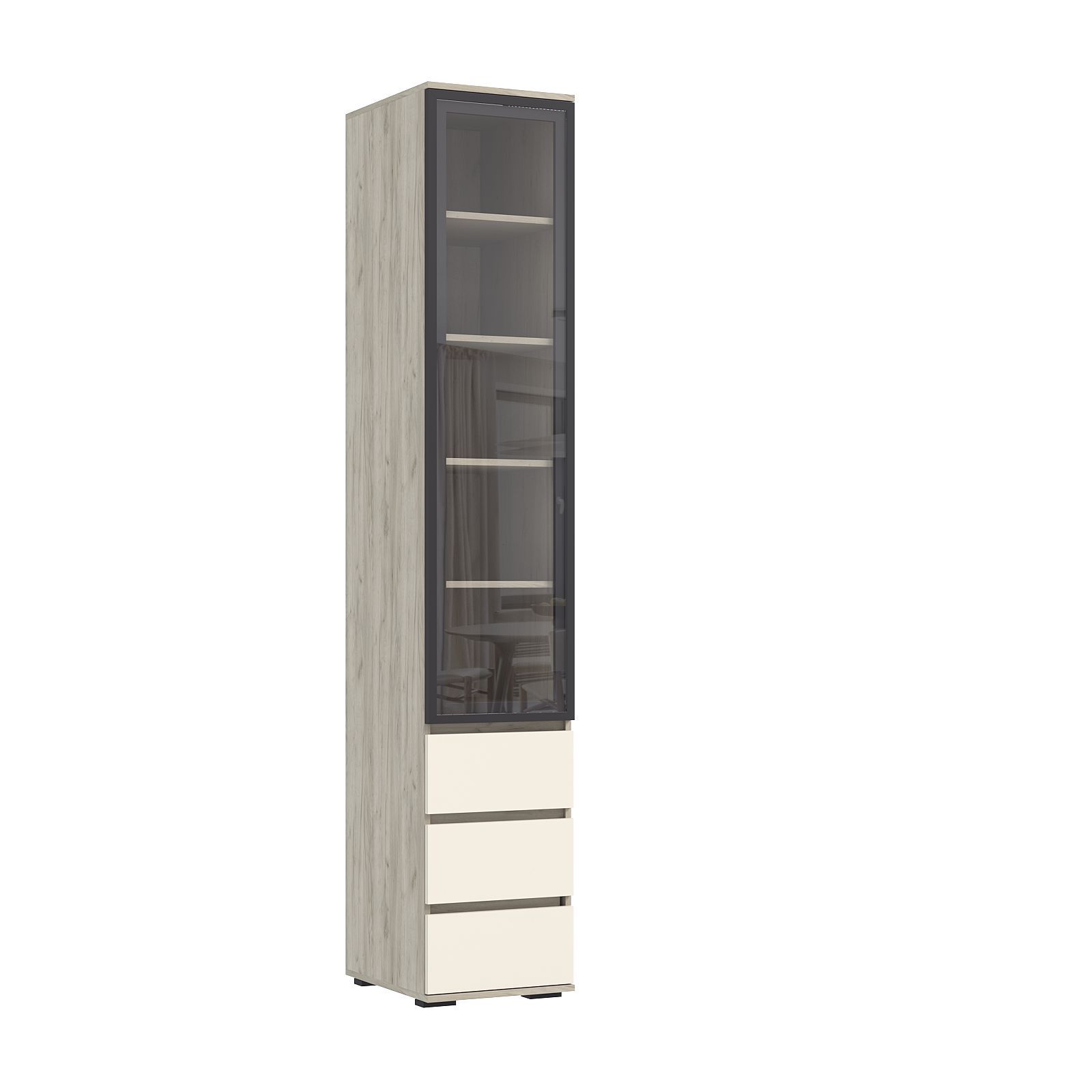 Норд Пенал-стекло (400) с ящиками (Кашемир, Дуб Крафт серый)