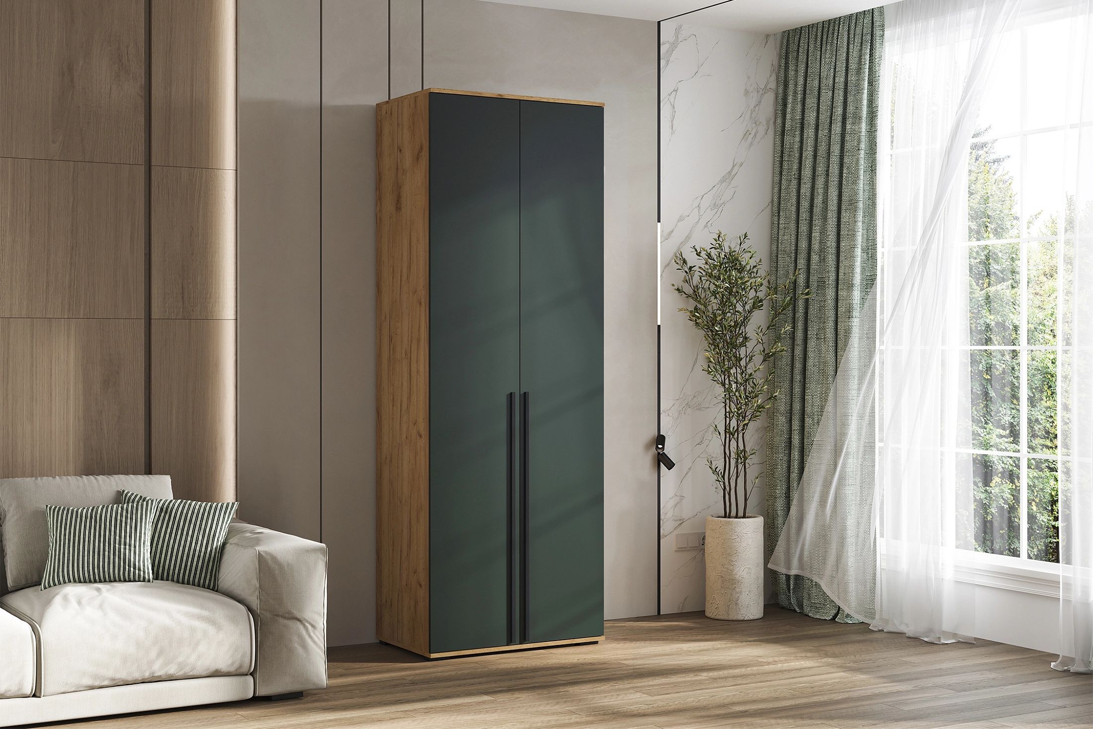 Норд Шкаф 2-х ств.(800) (Изумрудный (КРОМКА ИЗУМРУД), Дуб Крафт)