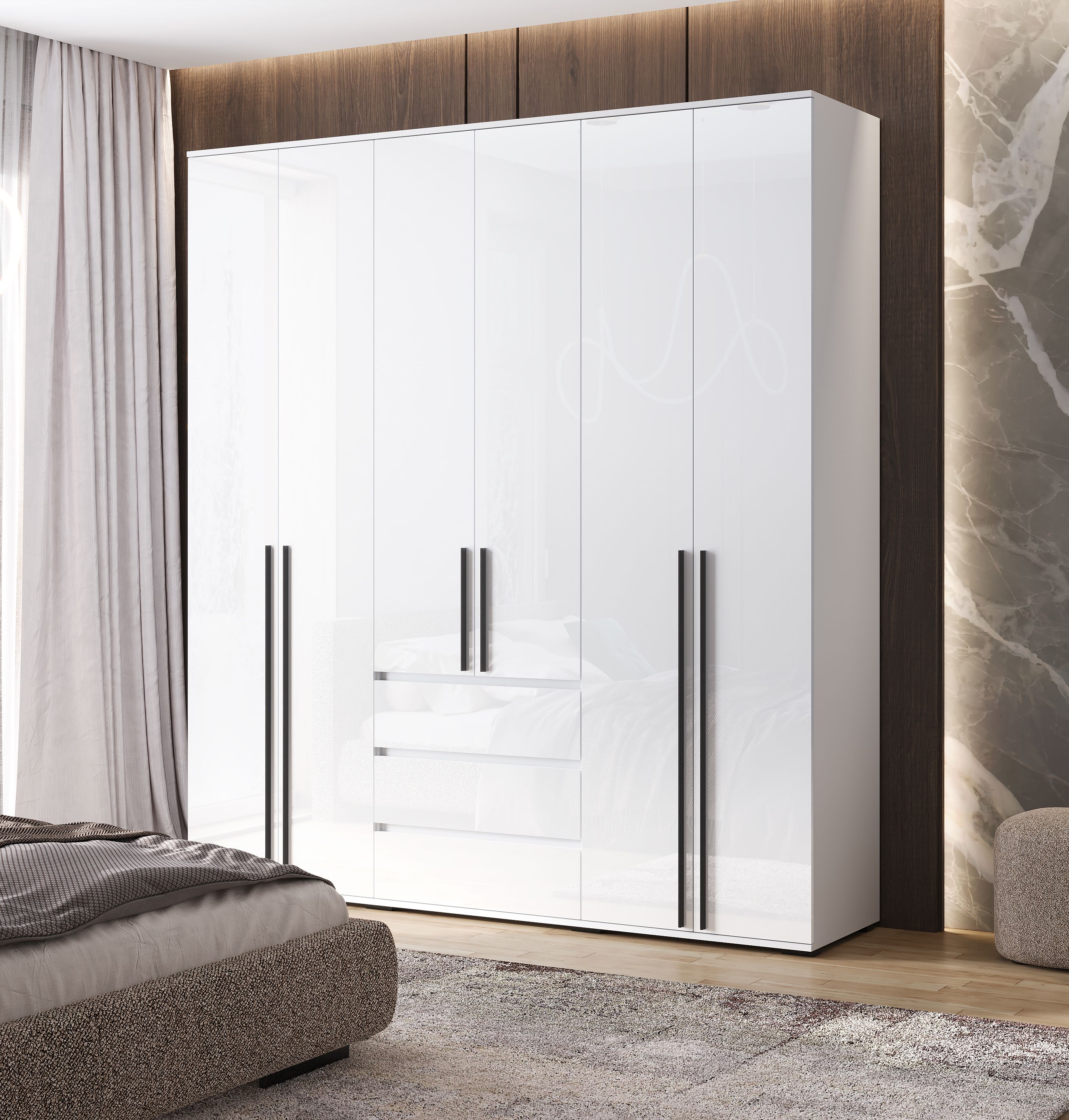 Норд Шкаф 6-ти ств. (Белый глянец, Белый)