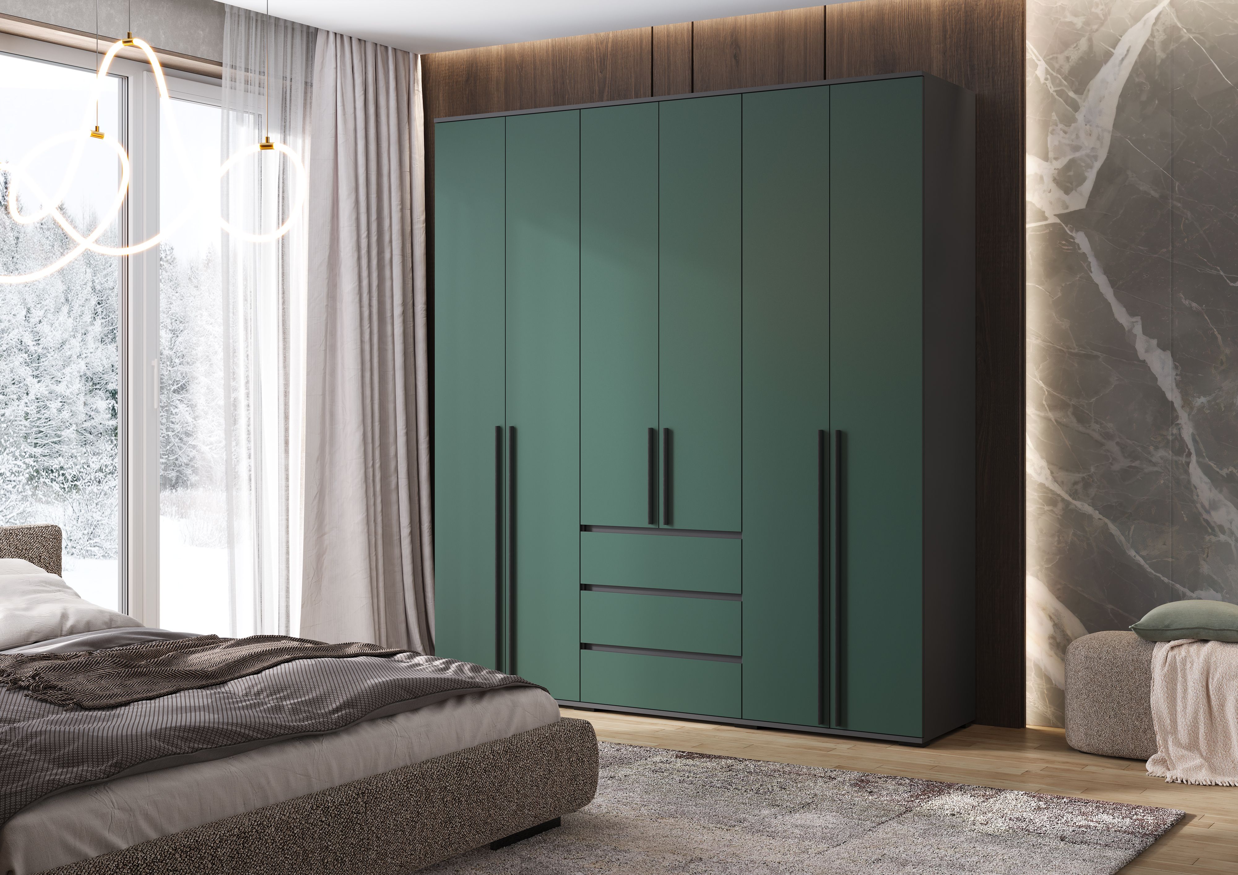 Норд Шкаф 6-ти ств. (Изумрудный (КРОМКА ГРАФИТ), Графит)