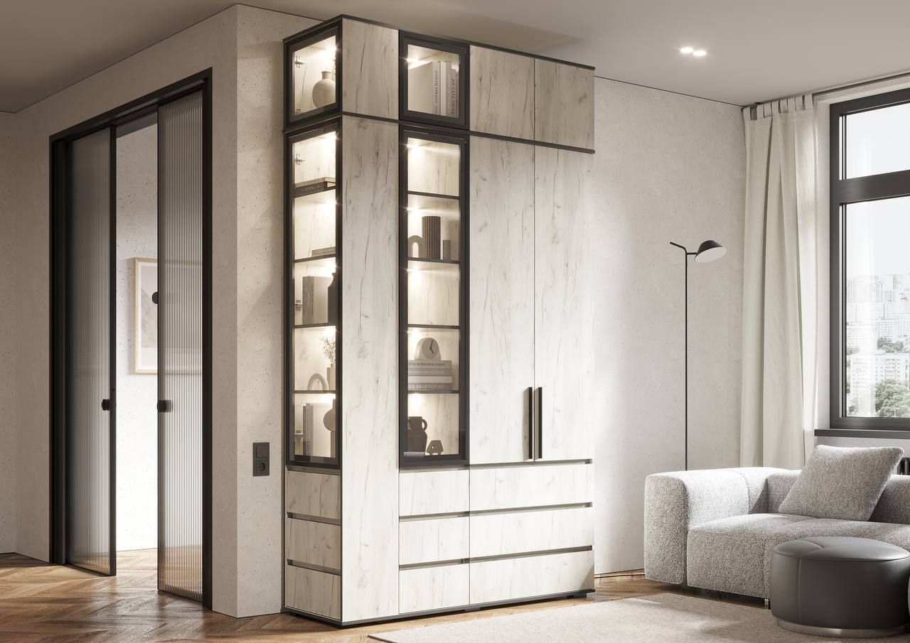 Пенал-стекло Норд с антресолью 40 х 265,4 х 51 см. - 1 шт.